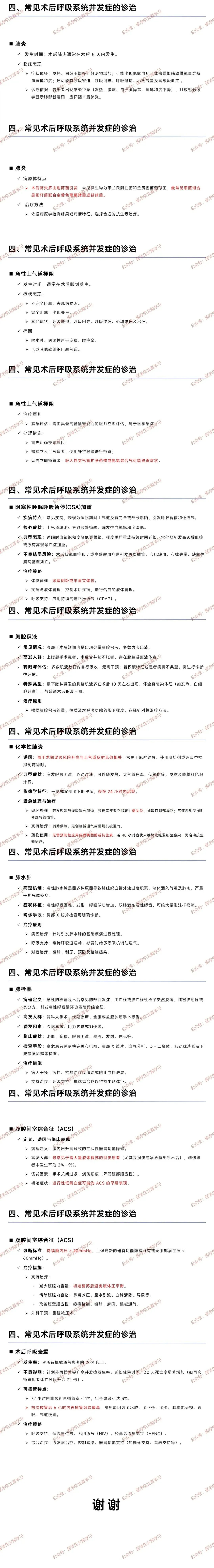 - 术后:强化呼吸监测、气道管理、并发症防治,促进呼吸功能恢复。