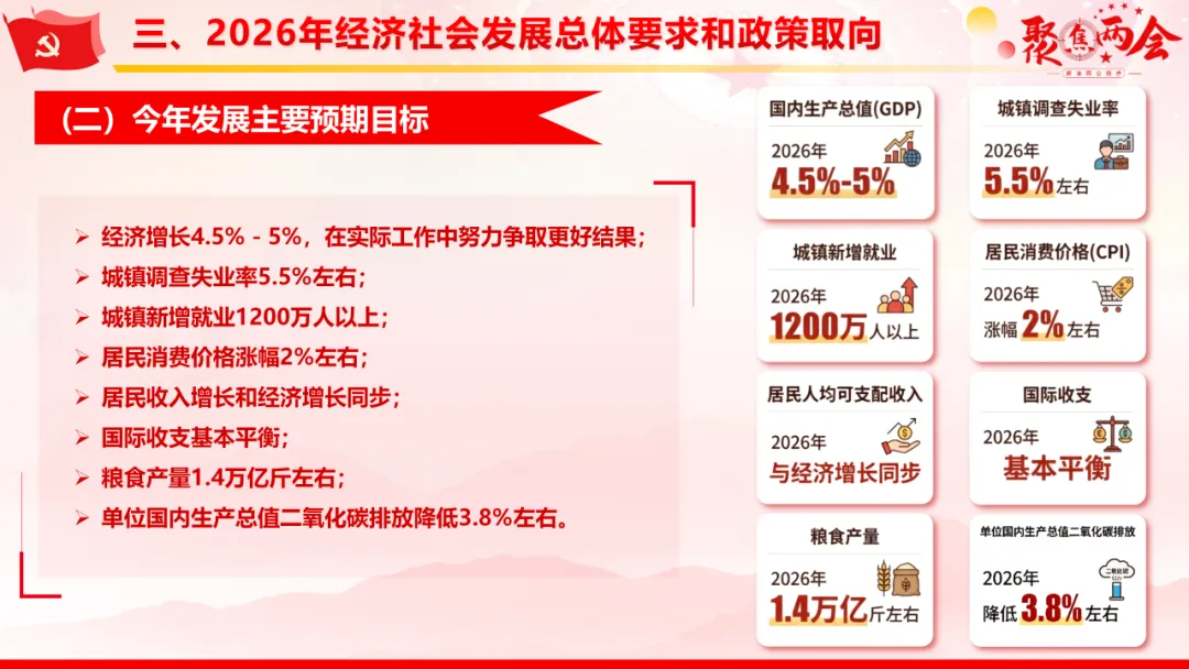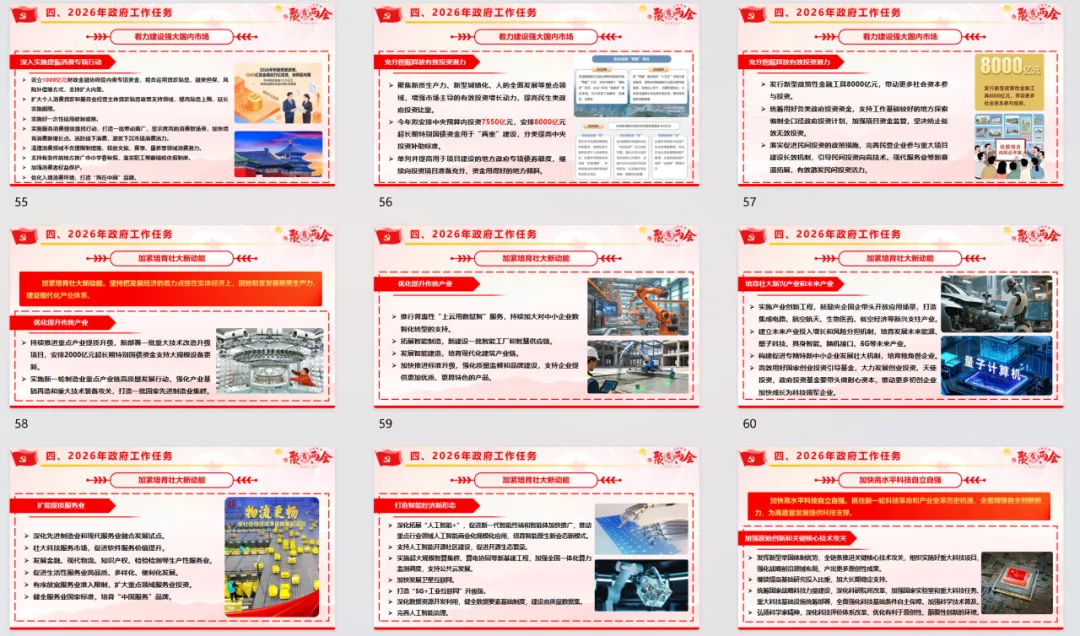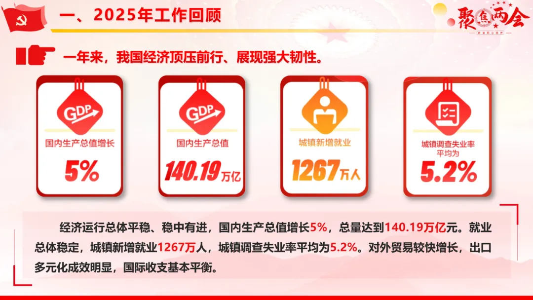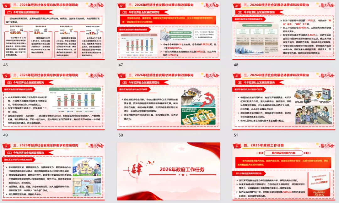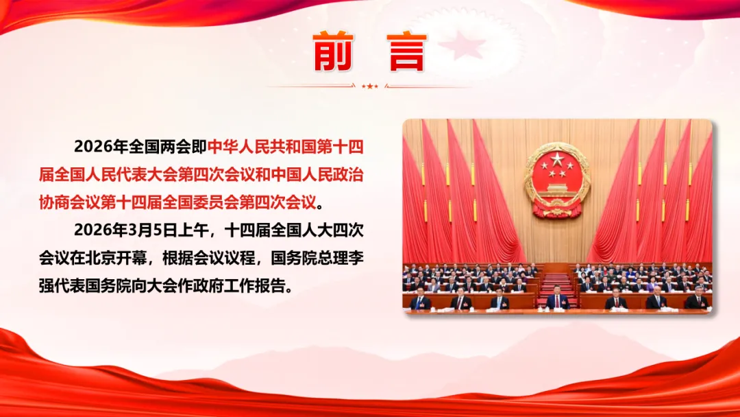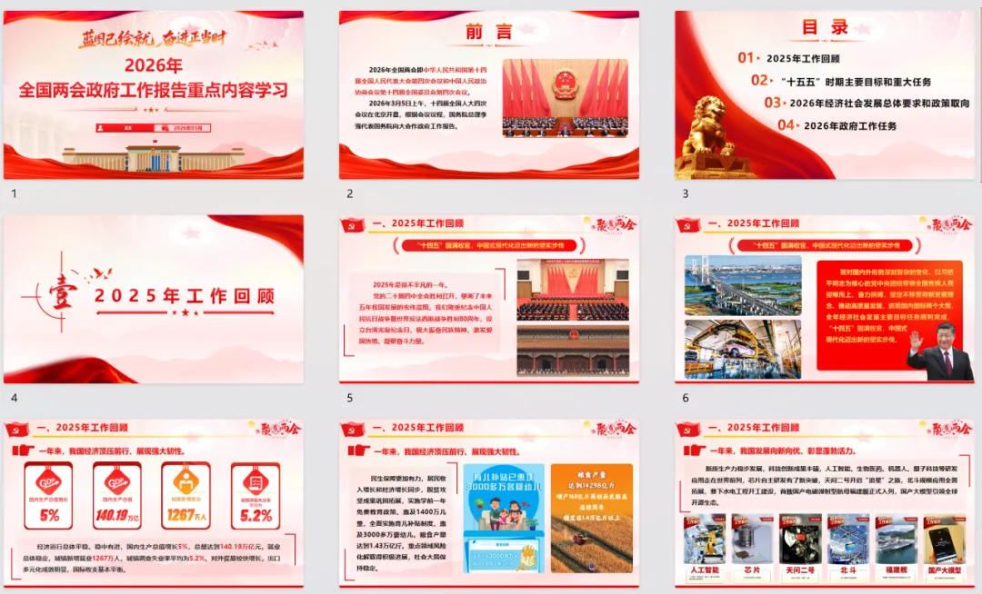 2026年两会政府工作报告重点学习PPT 学习2026年两会精神PPT 2026一季度党课附讲稿