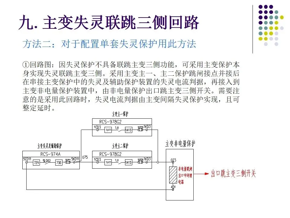 ①保护屏电压回路配置三相快速联动空气开关,电缆截面满足误差要求。