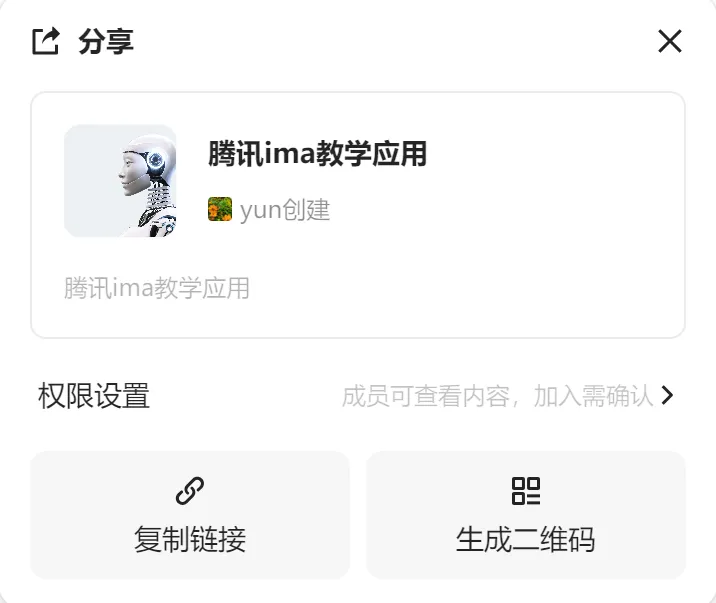1. 复制链接或生成二维码,可通过微信等发送,知识库一键分享。