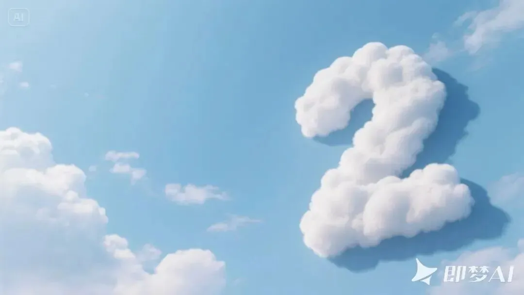 (提示词参考:仰望天空,画面左侧是云彩造型的的数字 “1”,数字周围是淡蓝色天空,零星淡淡云彩,斜角透视视角,数字呈现左上右下的构图。写实,高清摄影,8k)