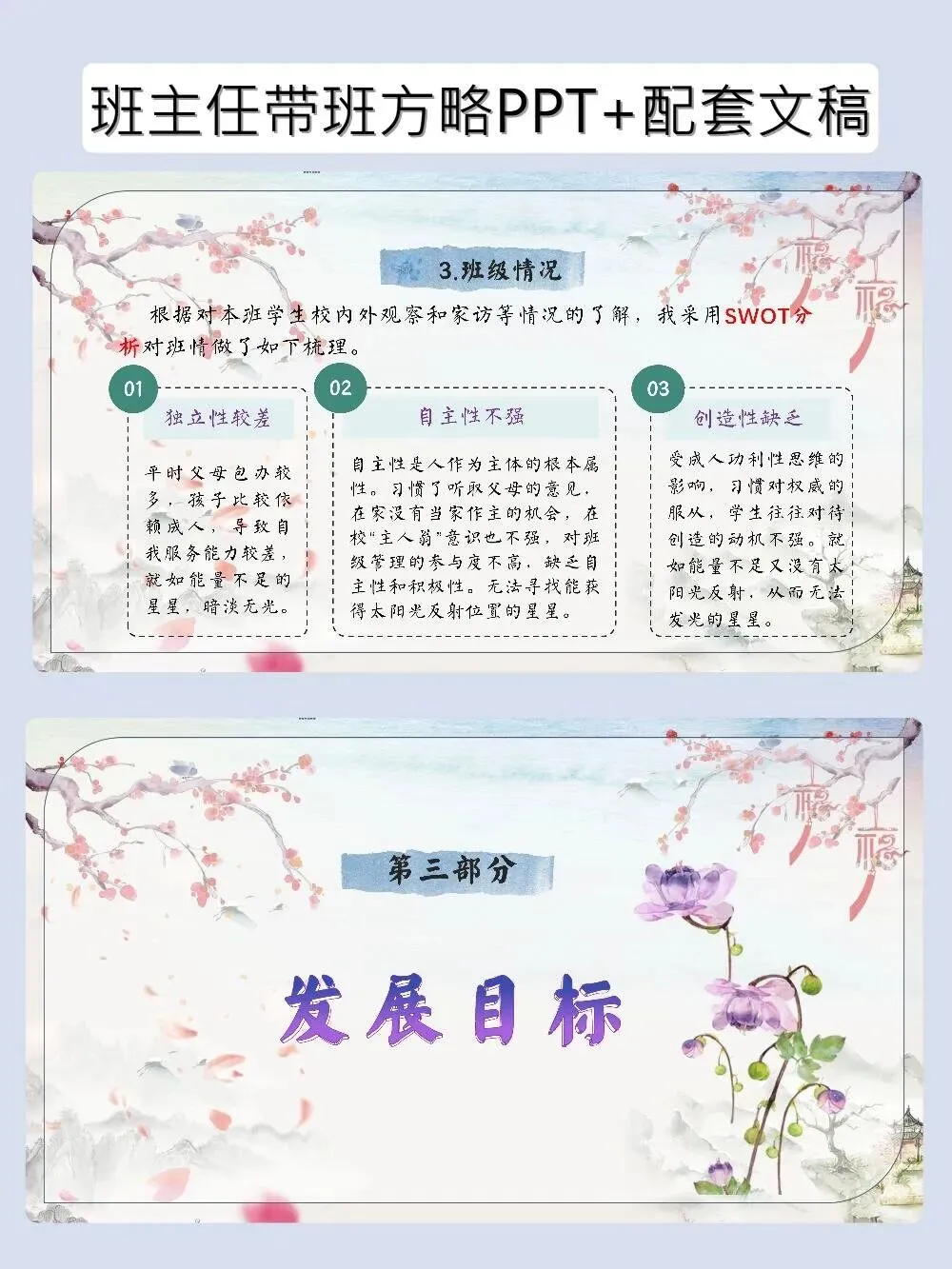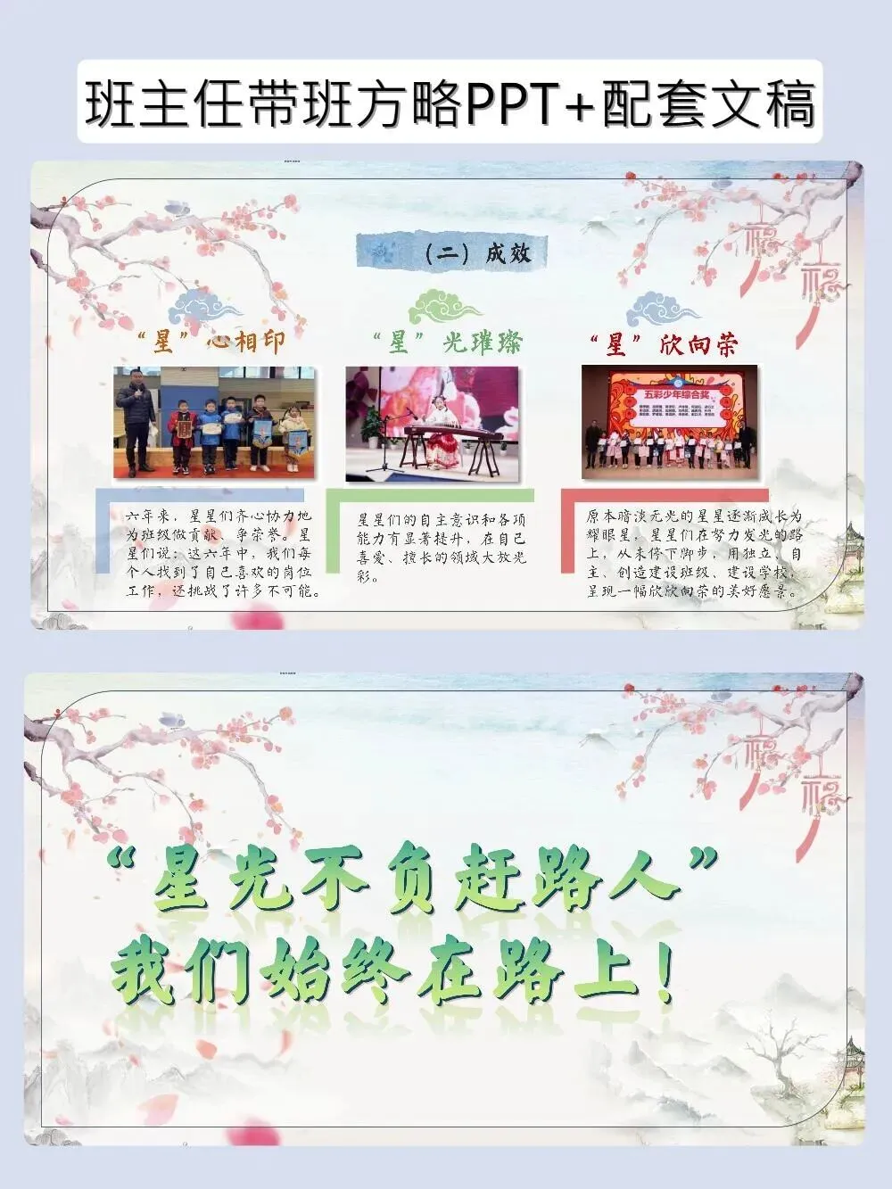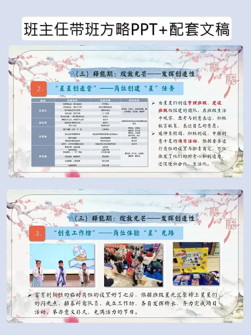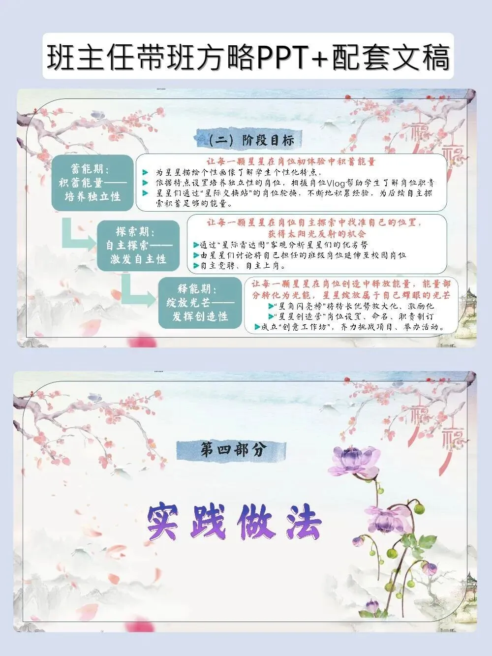 神仙带班育人方略PPT帮学生找到自己的C位 班主任带班育人方略–岗位赋能|让每一颗星星找准自己的“C”位 当班主任遇到这套带班育人方略,简直如获至宝!以“星辰”为喻,从蓄能、探索到释能,一步步帮学生培养独立性、自主性和创造性。PPT颜值在线,发言稿干货满满,直接套用,轻松带出让每个学生都发光的班级~