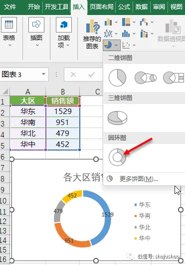 技巧1:圆环图与饼图的区别