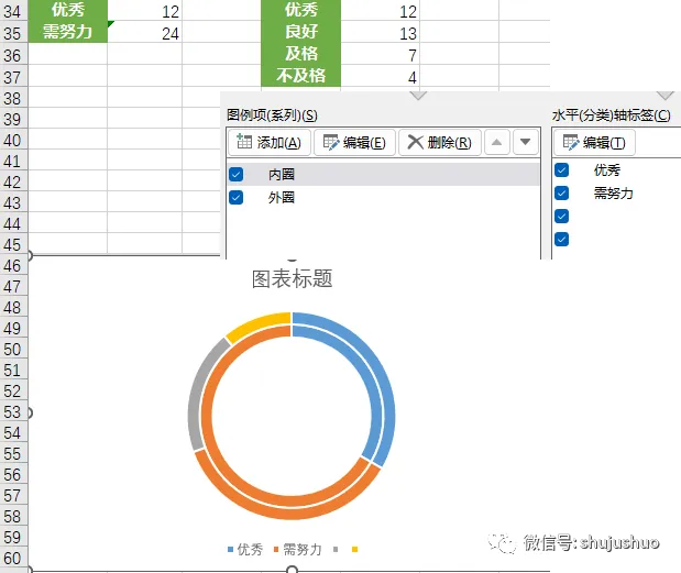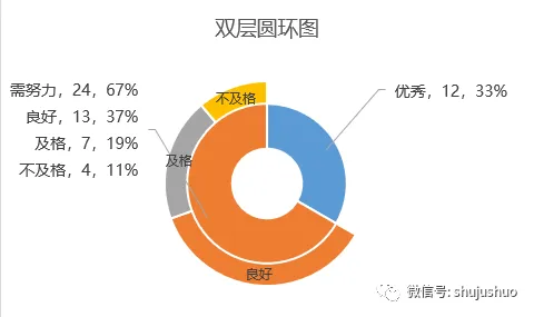 示例中,咱们需要展示班级里优秀和需努力的人数情况,同时,展示出需努力的童靴中,良好、及格和不及格的情况。