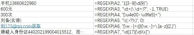 | 提取邮箱 | [\w.-]+@[\w.-]+\.[a-z]{2,} | =REGEXP(A2, "[\w.-]+@[\w.-]+\.[a-z]{2,}") |