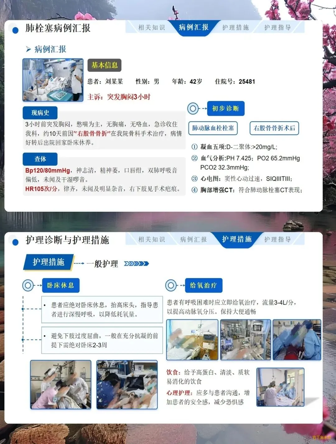 经系统干预,患者缺氧症状改善,生命体征平稳,未出现出血、再栓塞等并发症,心理状态与自理能力逐步恢复。本次查房让我们深刻认识到,肺栓塞护理关键在于早识别、严监测、精护理,既要守住急性期生命安全底线,也要做好长期抗凝管理与宣教,才能有效降低复发风险,改善患者预后。