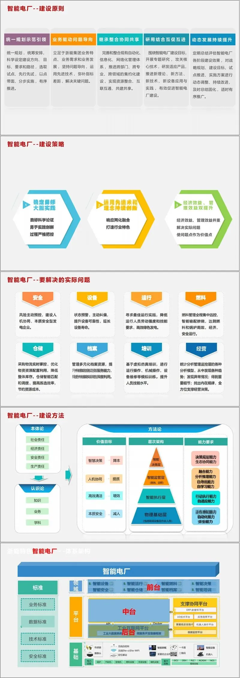 建设目标聚焦四大核心:响应 “数字浙江”战略,打造集团核心竞争力,实现智能生产与卓越运营,最终达成更经济、安全、环保的发展目标。方案确立了 “统一规划、示范引领”“业务驱动、问题导向” 等五大原则,提出通过数据、模型、技术、标准的深度融合,构建 “以实映虚、虚实融合、以虚控实” 的建设思路。