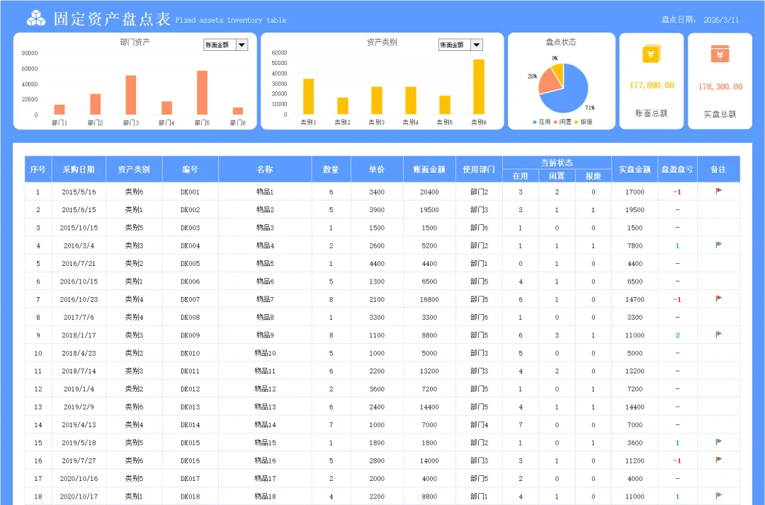所以,这次分享11套Excel盘点表模板,库存盘点、门店盘点、固定资产盘点都有,分类清晰,直接填数据就能自动汇总。不用自己做表、改格式、写公式,打开就能用,直接套用就行。