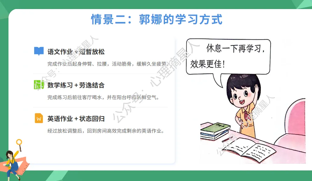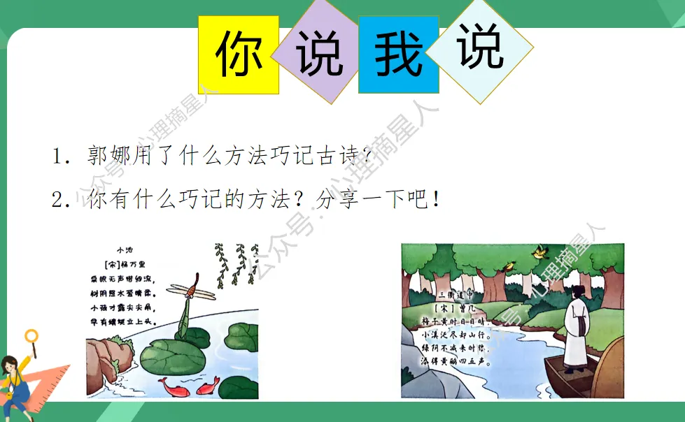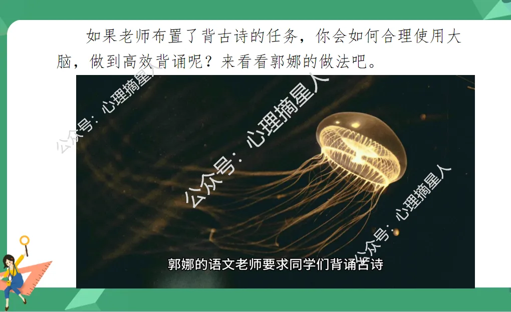 通过郭娜背诵古诗的例子,引导学生思考科学用脑的巧