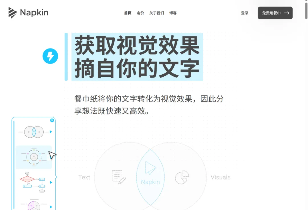 Napkin是一款主打快速草图绘制的工具,在我思考ppt插图如何制作的初期阶段,它帮助我快速捕捉灵感。这款软件的理念是"快速表达想法",非常适合用于头脑风暴和初步构思。