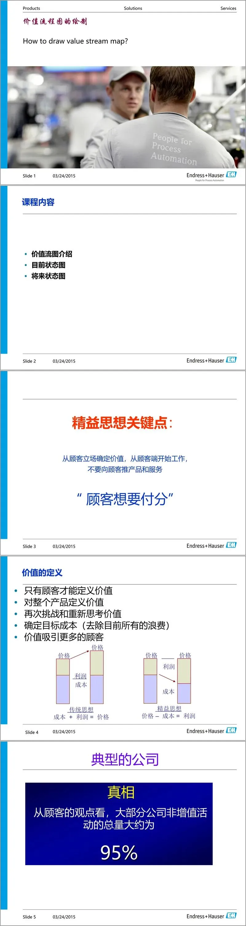 精益思想的核心是从顾客立场定义价值,传统理念中 “成本 + 利润 = 价格” 的逻辑,在精益思想中被重构为 “价格 - 成本 = 利润”,这意味着企业需通过去除浪费、降低成本来提升利润,而非单纯依赖定价。值得关注的是,从顾客视角来看,多数企业的非增值活动占比高达 95%,这正是价值流图要解决的核心问题 —— 识别并消除不创造价值的行为。