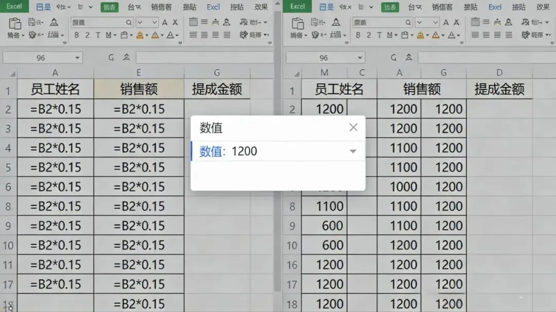 假设你用公式算出了C列的销售提成,需要把提成结果复制到D列,只保留纯数字,不带任何公式