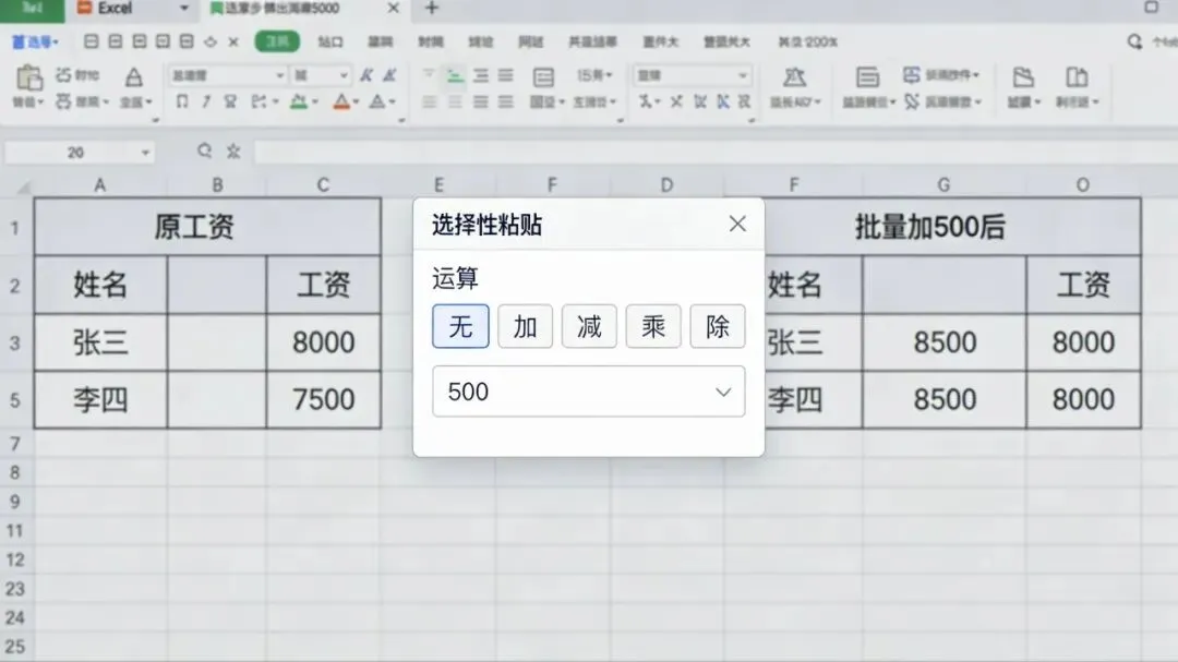 极简操作步骤:① 在空白单元格输入要运算的数值(比如500、0.9),按Ctrl+C复制;② 选中要修改的所有数据区域;③ 打开选择性粘贴,在【运算】栏选择对应的加/减/乘/除,点击确定,瞬间完成全区域批量修改,新手也能零出错。