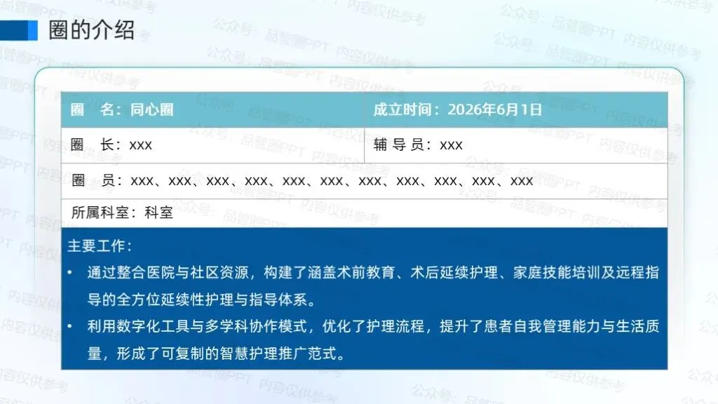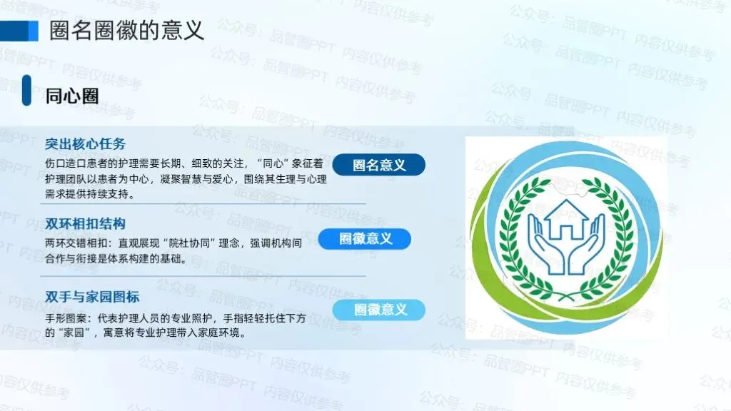 伤口造口患者的护理需要长期、细致的关注,“同心圈”象征着护理团队以患者为中心,凝聚智慧与爱心,围绕其生理与心理需求提供持续支持。
