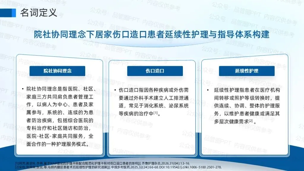 在人口老龄化加速与慢性伤口造口疾病高发的双重背景下,居家患者的延续性护理需求日益凸显。当前,我国伤口造口护理存在"院内优质资源下沉不足"与"社区护理能力薄弱"的结构性矛盾,导致患者出院后常面临伤口感染、造口并发症处理不当等风险,影响康复质量与生活质量。院社协同理念通过整合医院专科护理资源与社区基层服务网络,为破解这一难题提供了创新路径。