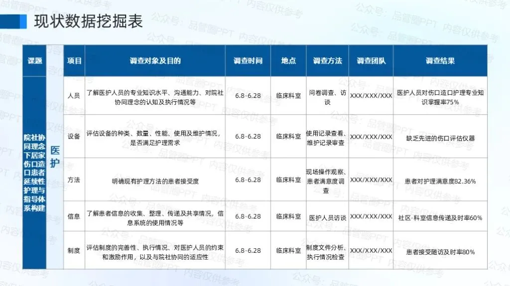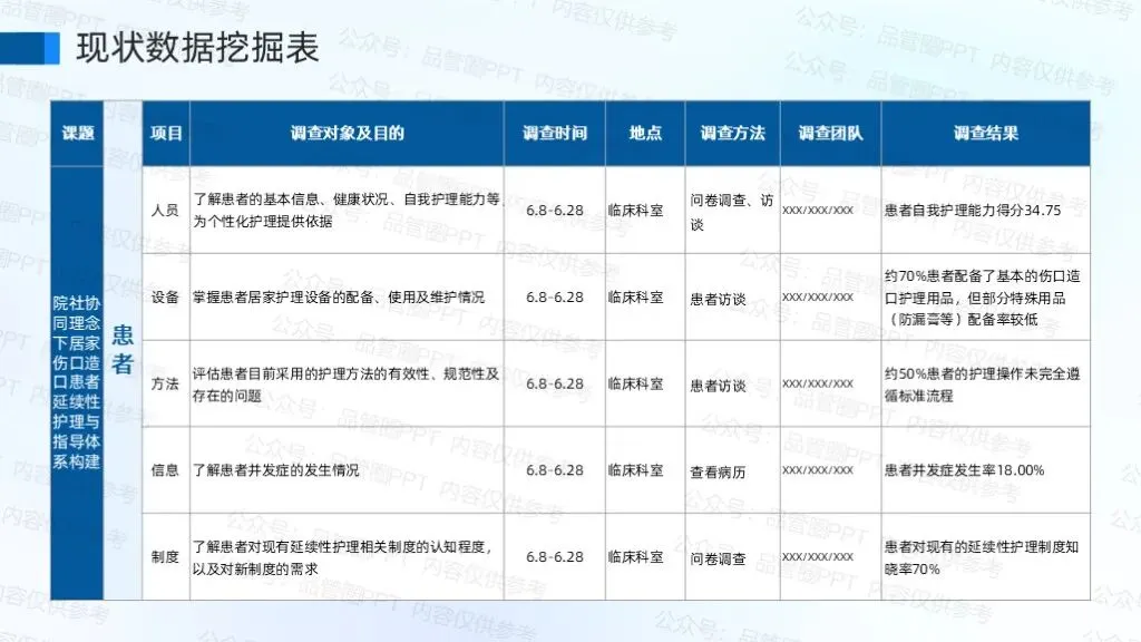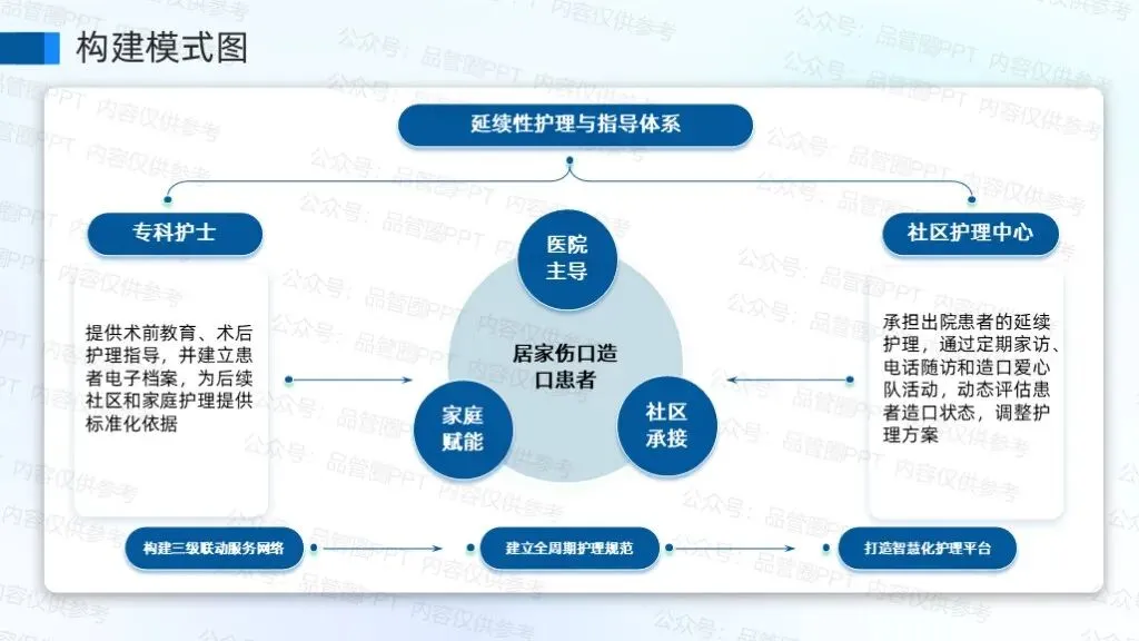 利用课题研究型品管圈,聚焦构建"医院-社区-家庭"三位一体的延续性护理体系,通过标准化护理流程、信息化联动平台及专业化培训机制的设计,实现伤口造口患者从住院到居家的无缝衔接护理服务。研究不仅有助于降低患者再入院率、减轻医疗负担,更能为基层护理能力提升提供可复制的实践范式。