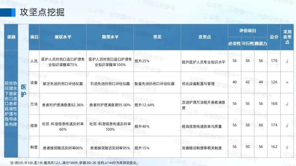 通过对比期望水平和现状水平,明确出各项攻坚点。