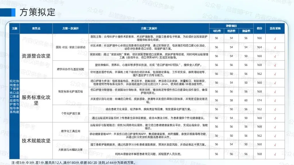 对三大攻坚点进行方案一次二次展开,并通过531评价法确定对策。