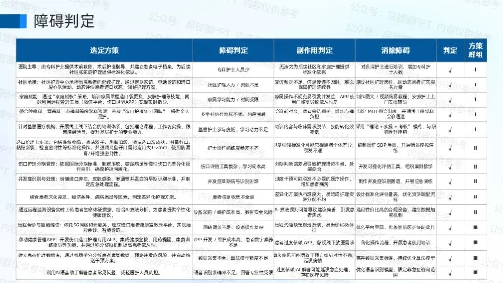 经过障碍表判定,明确副作用,并提出消除障碍的方法。