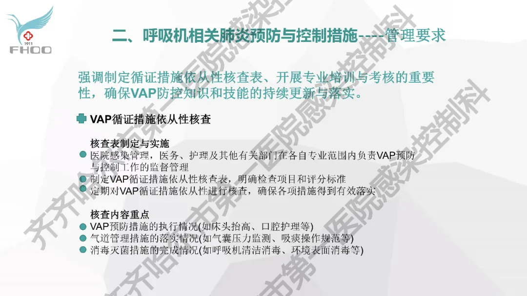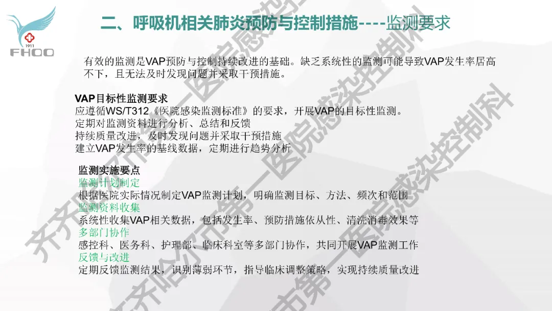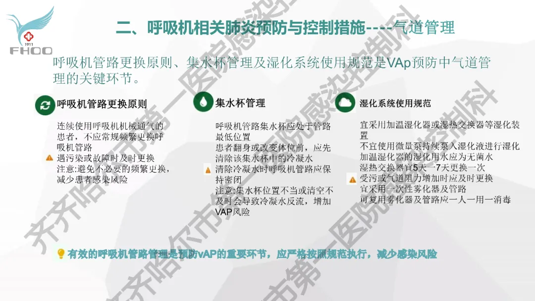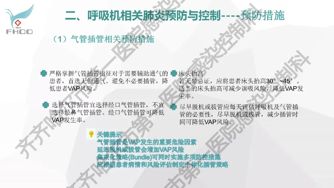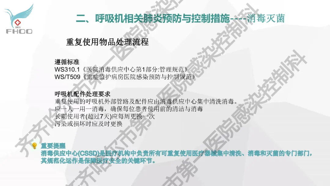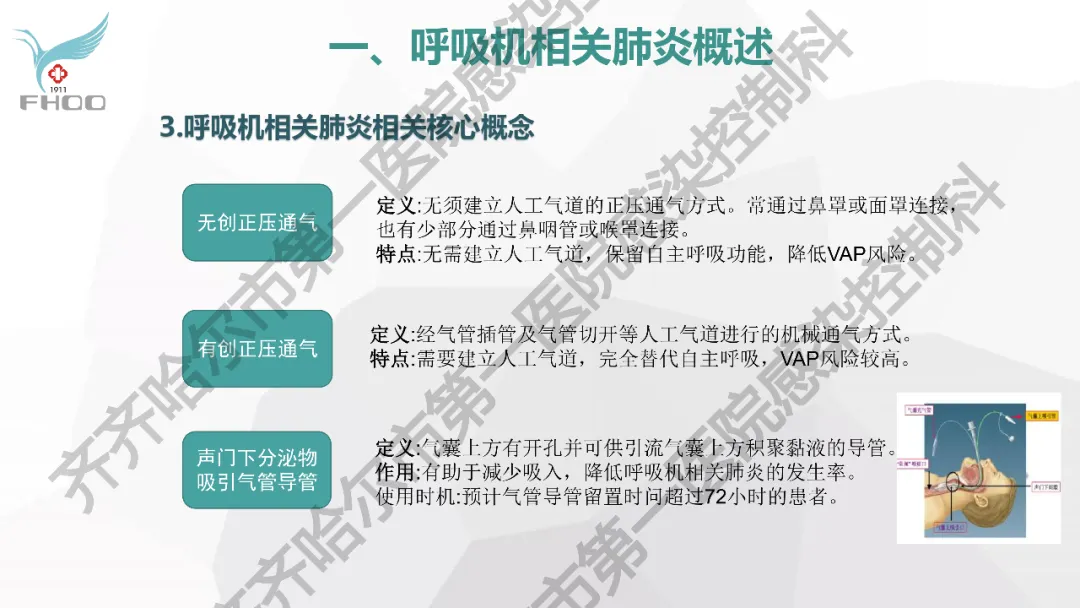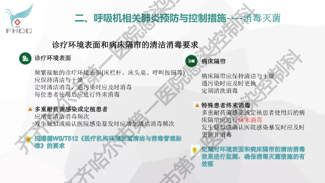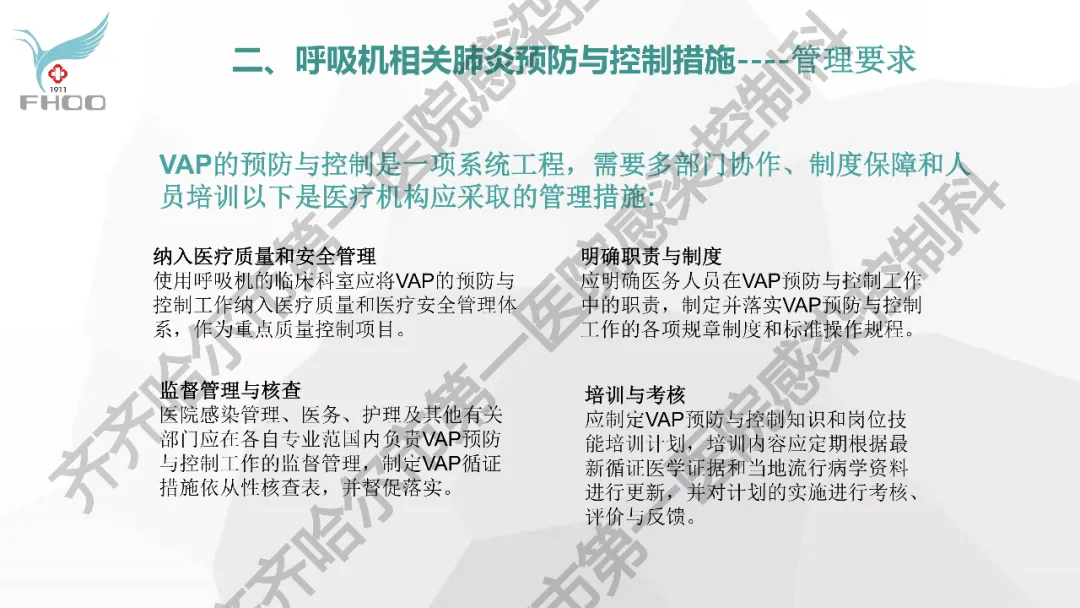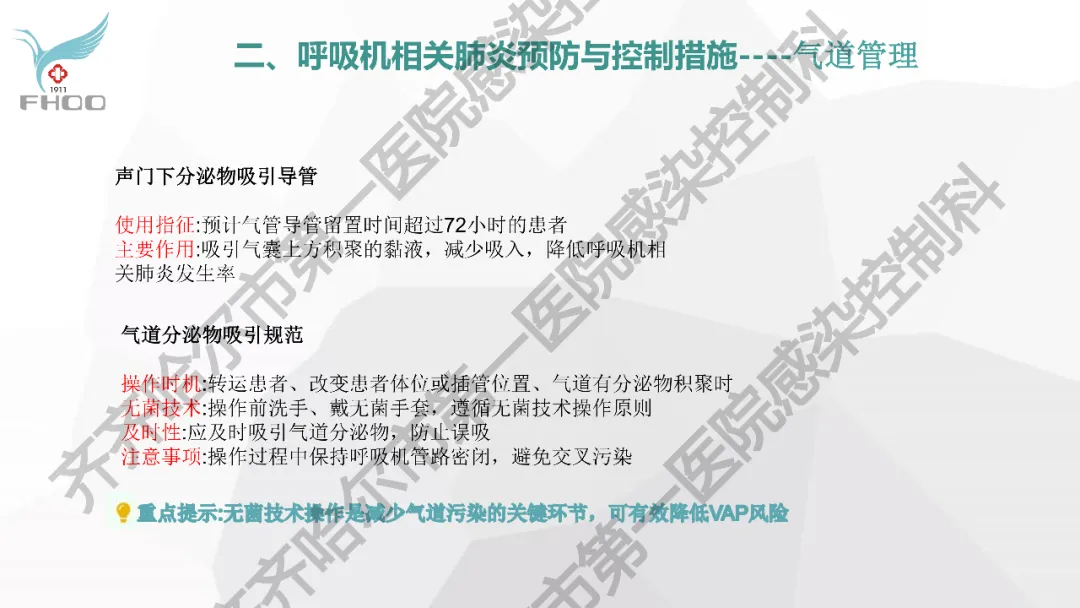 机械通气是抢救危重患者的重要手段,是危重患者的“生命支撑”,但它也可能带来一个“隐形杀手”——呼吸机相关肺炎(VAP)。VAP是机械通气患者最常见的严重医院感染,不仅会加重患者病情、延长住院时间,还会增加治疗成本,甚至威胁患者生命安全,为严格落实国家强制性行业标准要求,进一步强化全院感控意识,规范呼吸机相关肺炎(VAP)预防与控制临床操作流程,切实保障患者医疗安全,提升医疗质量,今日分享由市院感质控中心、我院感控科李颖丽的培训课件《呼吸机相关肺炎预防与控制标准》把“标准条款”转化为“实操指南”,助力一线医护筑牢感控防线!