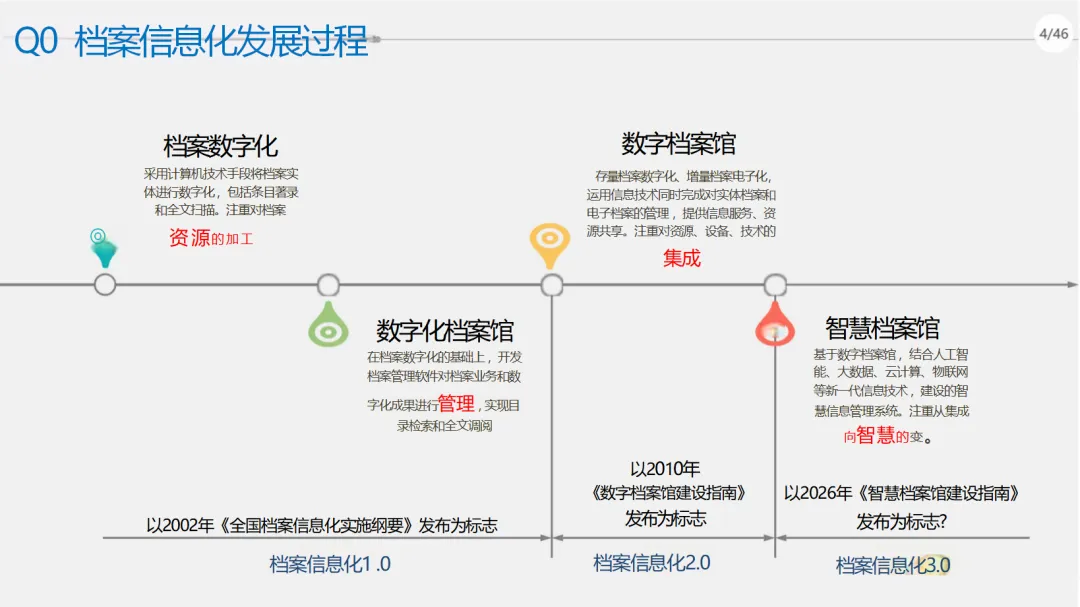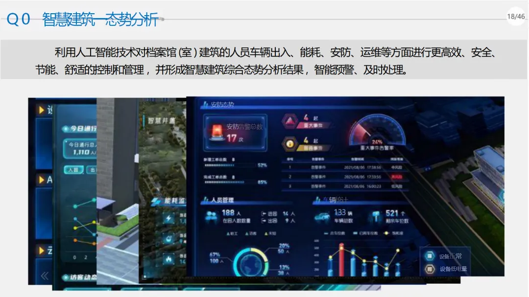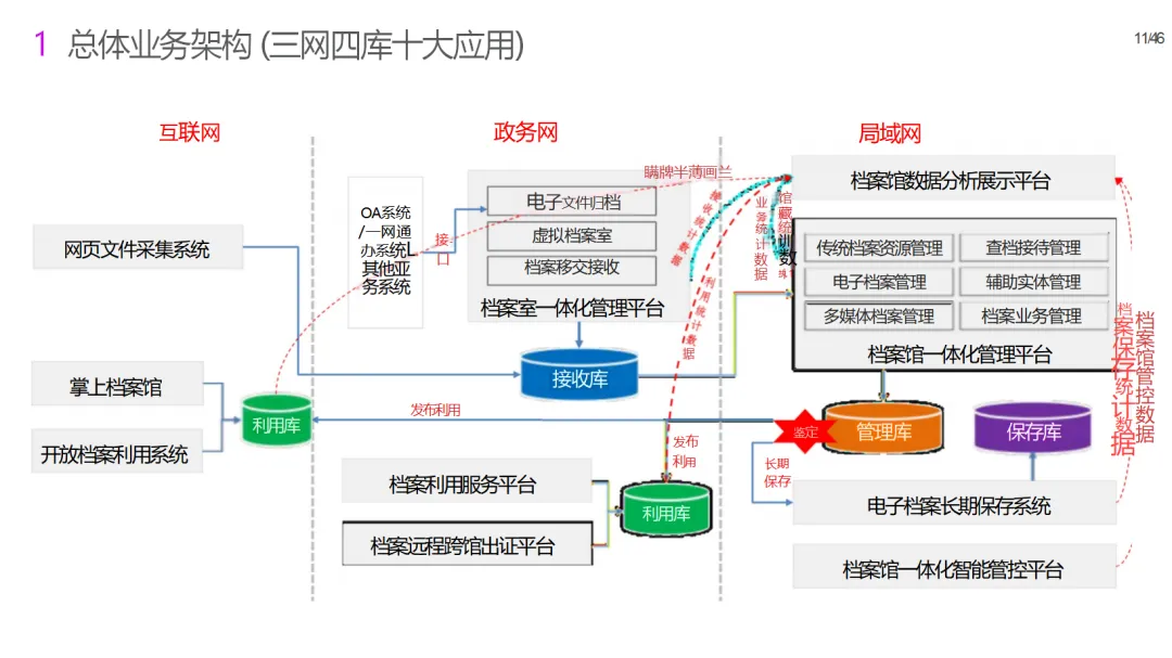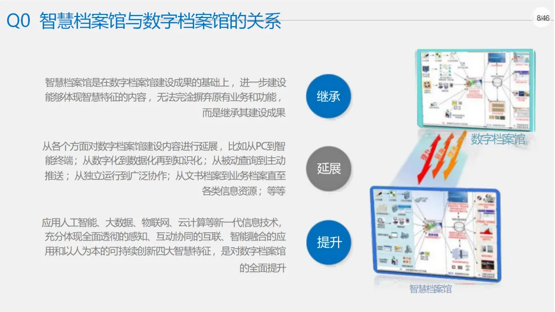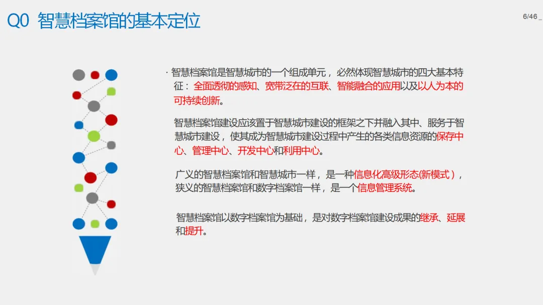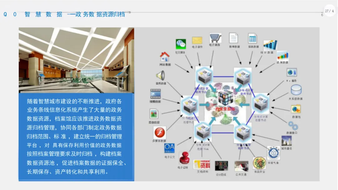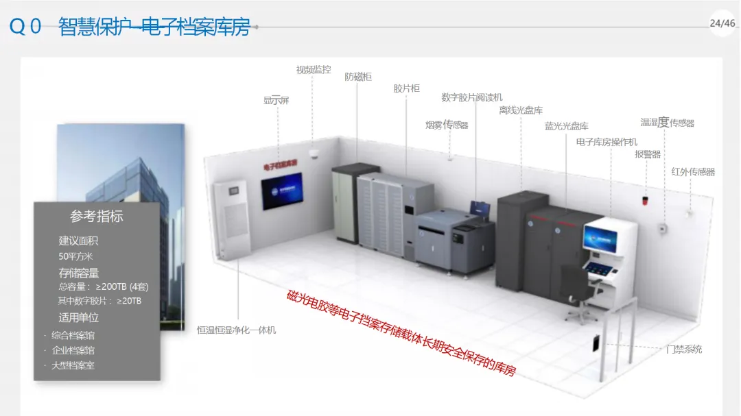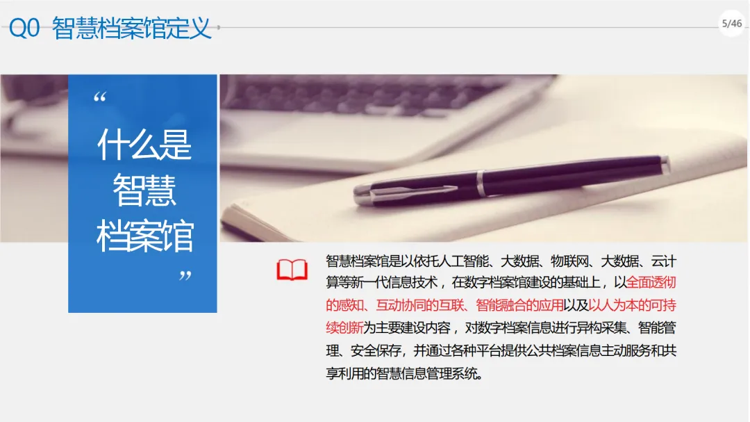 本方案针对档案信息化从数字化向智慧化跃迁的发展趋势,提出以“全面透彻的感知、互动协同的互联、智能融合的应用、以人为本的可持续创新”为核心特征的智慧档案馆整体解决方案。在继承数字档案馆建设成果的基础上,方案融合人工智能、大数据、物联网、云计算等新一代信息技术,构建“三网四库十大应用”业务架构,实现档案资源从被动查询到主动推送、从独立运行到广泛协作、从文书档案到多源信息资源的全面升级。核心架构层面,方案采用6S架构(智慧建筑、智慧保护、智慧数据、智慧服务、智慧决策、智慧管理),覆盖20余个应用场景。智慧建筑通过物联网网关统一接入环境、监控、门禁、照明、暖通等设备,结合数字孪生技术实现档案馆超精细三维建模与综合态势分析;智慧保护构建集智能密集架、库房机器人、虚拟库房、电子档案库房于一体的防护体系,RFID技术实现档案无序存放与有序管理,库房机器人可自动巡航、精准定位、高速存取,真正实现库房无人化;智慧数据聚焦档案数据的智能收集、整理、治理与建库,支持政务服务电子文件“一事一卷”归档、档案自动摘要、关键词提取及知识库构建,推动档案从信息向知识转化;智慧服务集成语音/声纹识别、多模态检索、自然语言处理等技术,实现智能检索、辅助接待、自动编研与数字展陈;智慧决策通过数据可视化与领导驾驶舱,辅助管理者全面掌握运行状况;智慧管理构建统一运维与低代码开发平台,支撑应用柔性化构建。技术亮点层面,方案采用LLM+RAG模式构建档案行业垂直大模型,实现智能问答、自动写稿等生成式应用;基于少样本孪生网络学习实现智能开放审核;通过轻量级语言模型支持档案自动编研;磁光电胶混合存储方案保障电子档案长期安全。最终,智慧档案馆不仅是智慧城市的信息保存中心,更是数据开发与知识服务的核心枢纽,推动档案事业从“管文件”向“管数据、赋智能、创价值”的深刻变革。