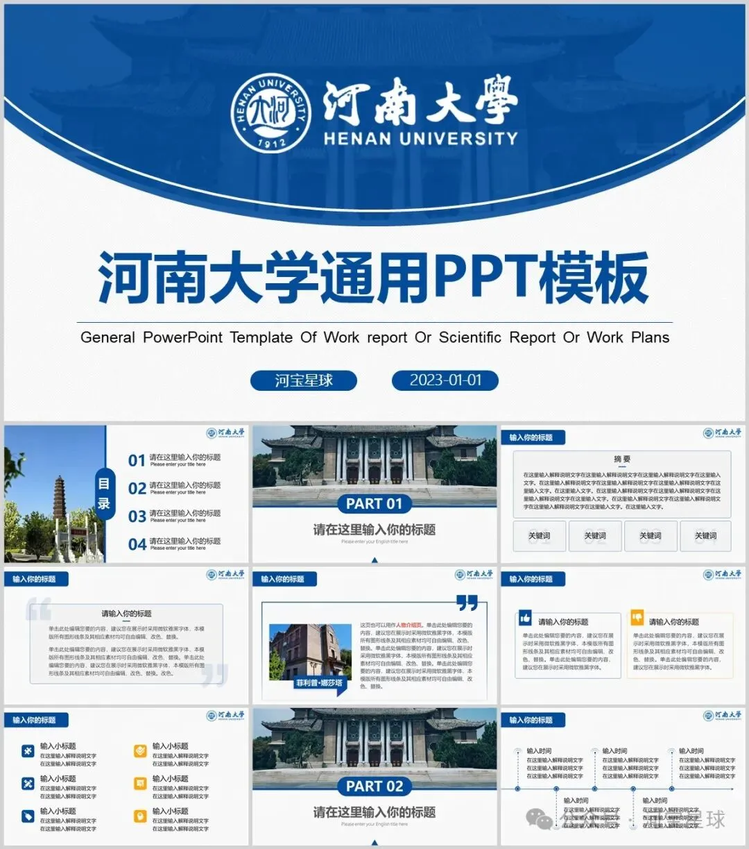 “河南大学”PPT模板来了~