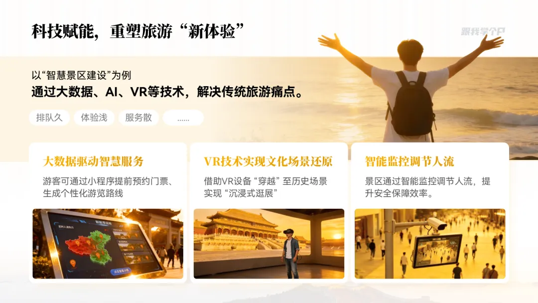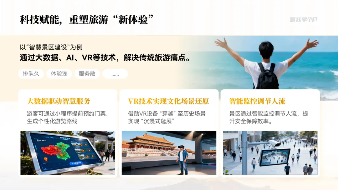 再看这页灰沉沉的 PPT,想让它变得灵动清爽,该咋办?