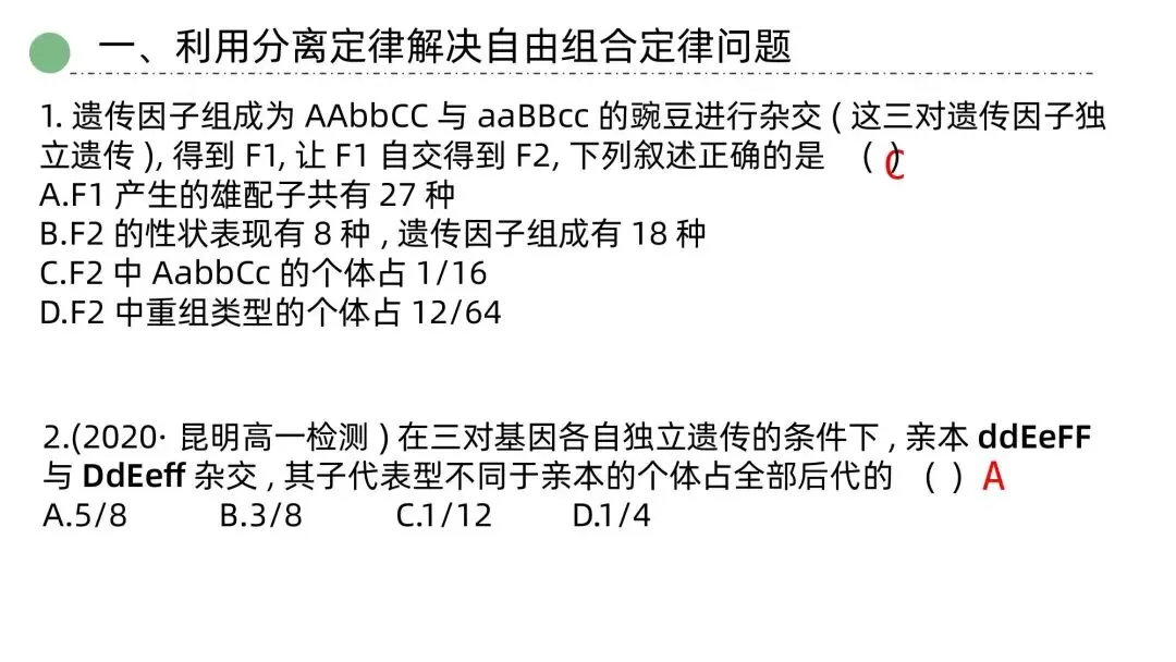 自由组合定律的微专题,生物有术原创,添加生物有术小杨老师微信