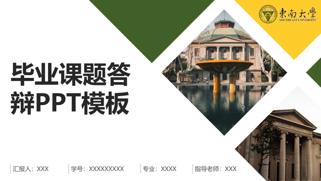 以东南大学标志性的黄色和绿色为主调,