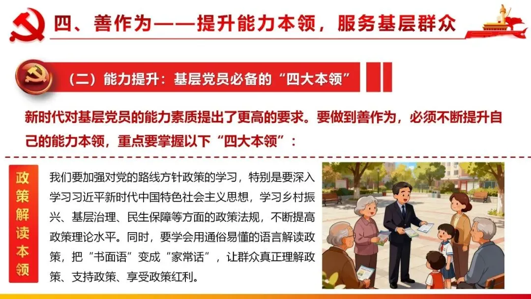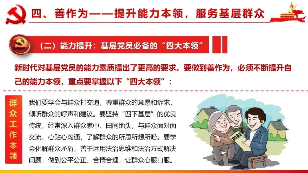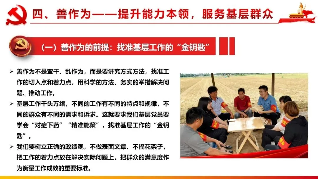 【党员教育培训PPT】扎根基层建新功!党员干部要做好这四件事