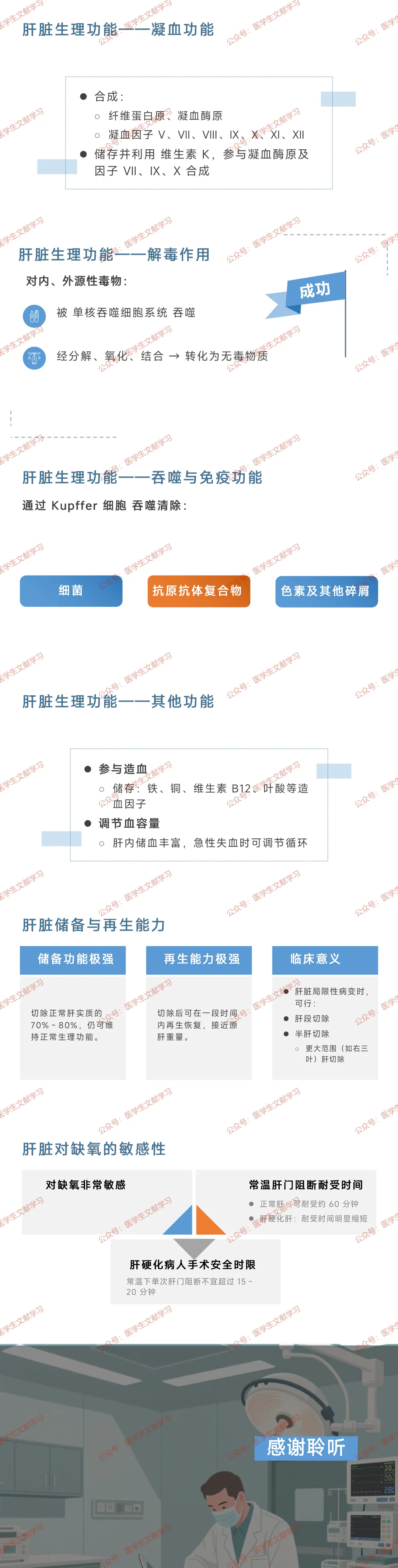 - 储备功能:切除正常肝实质的 70%~80%,仍可维持正常生理功能。