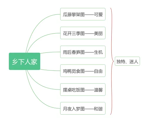 审美创造:揣摩优美的语句,想象画面,体会乡下人家的独特、迷人。发展学生的审美能力。