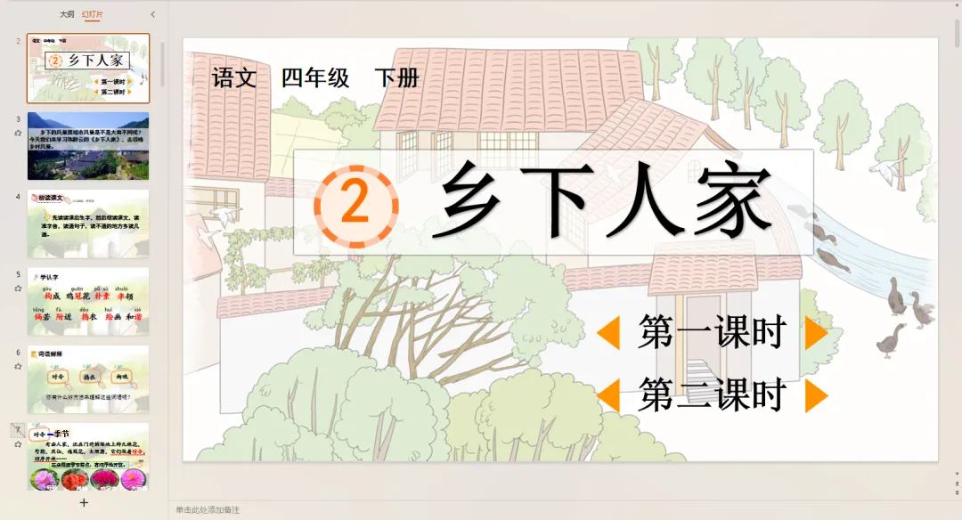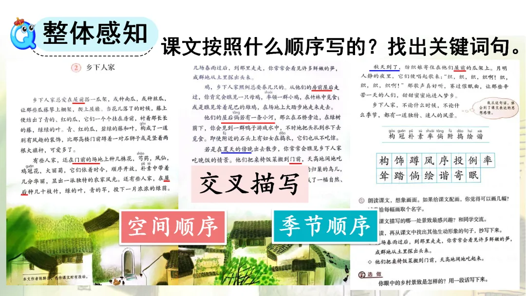 3.体会乡下人家屋前屋后的美景。