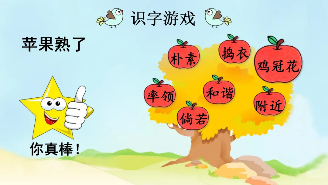 (4)识字游戏:苹果熟了。(出示课件10)