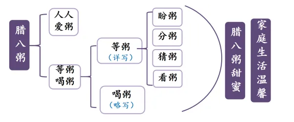 师总结:作者通过详细描写喝粥后的画面,让人仿佛看到了一家人喝粥时的香甜和满足,这样的结尾更有余味,显示出作者的匠心独运。