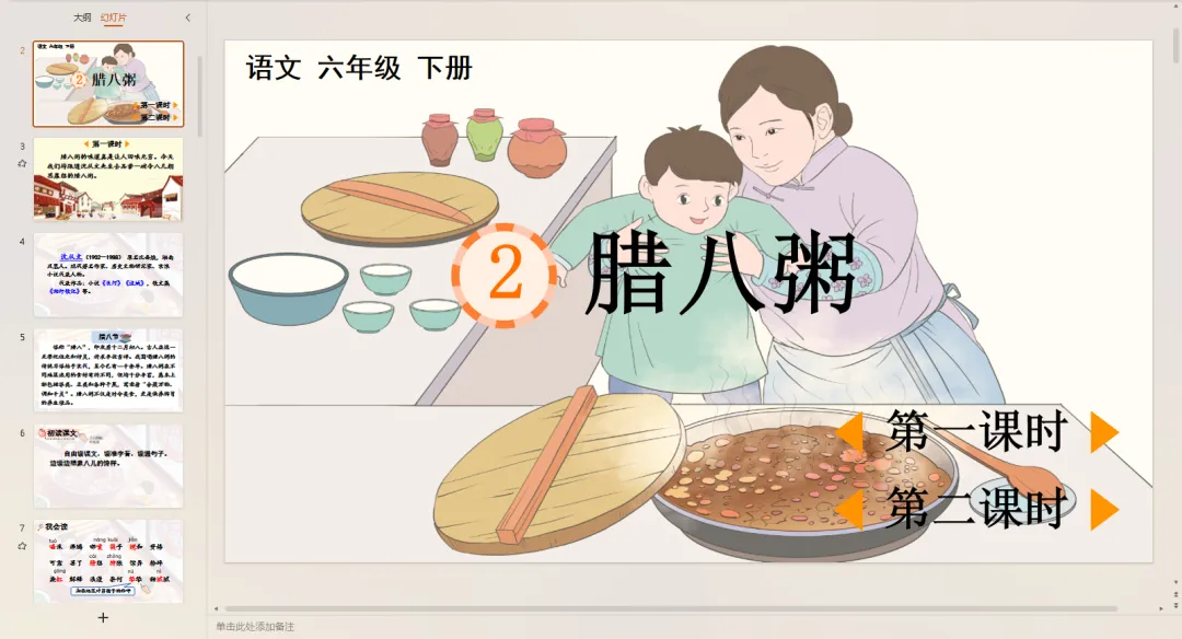 4.教师提出要求:这篇课文围绕腊八粥写了哪些内容?(出示课件11)