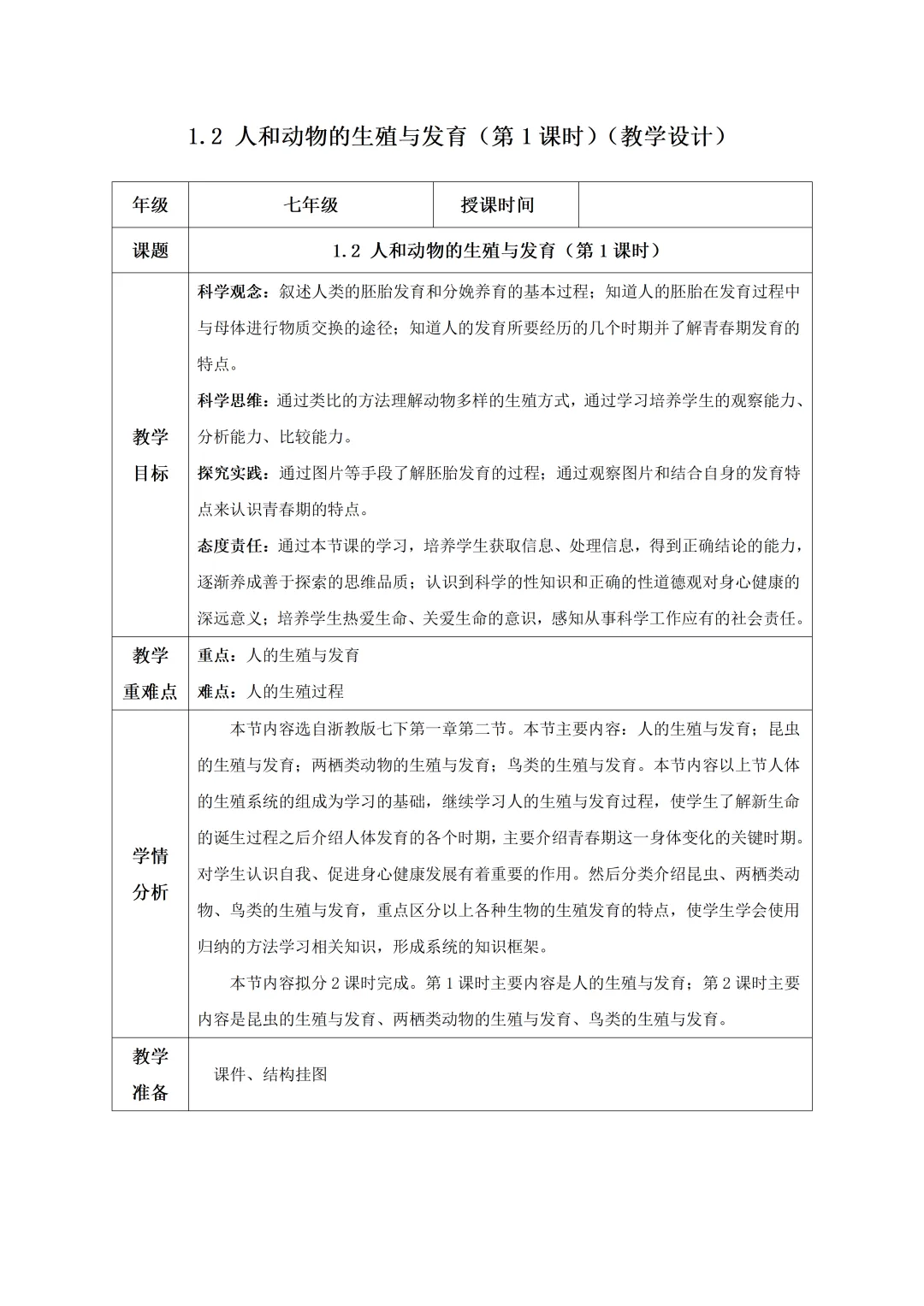 新改版 科学七年级下册教案+课件PPT (浙教版)