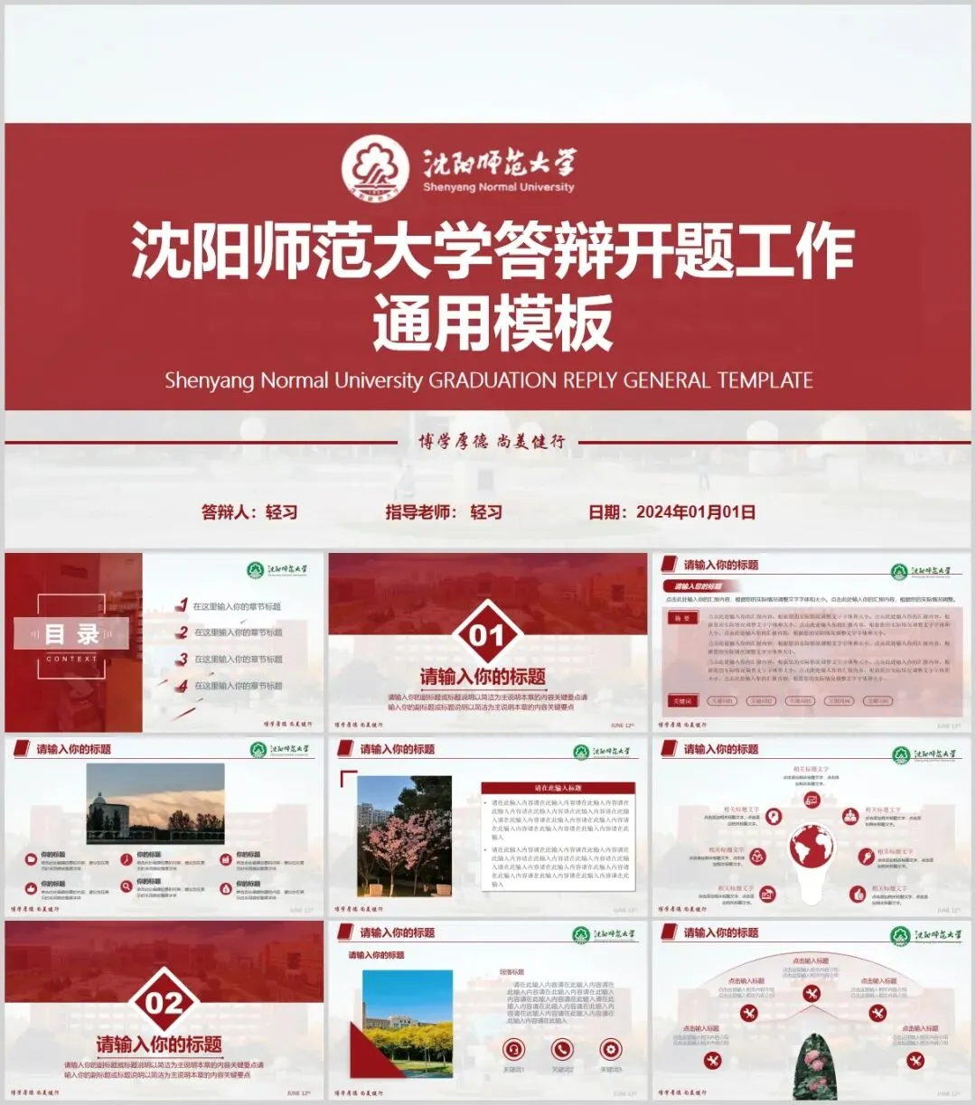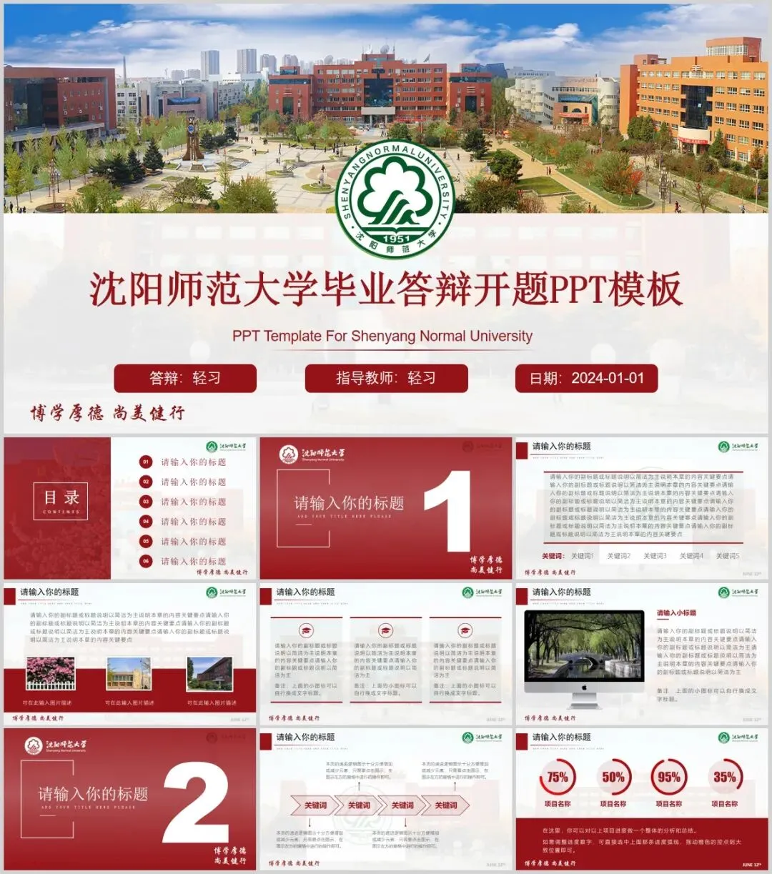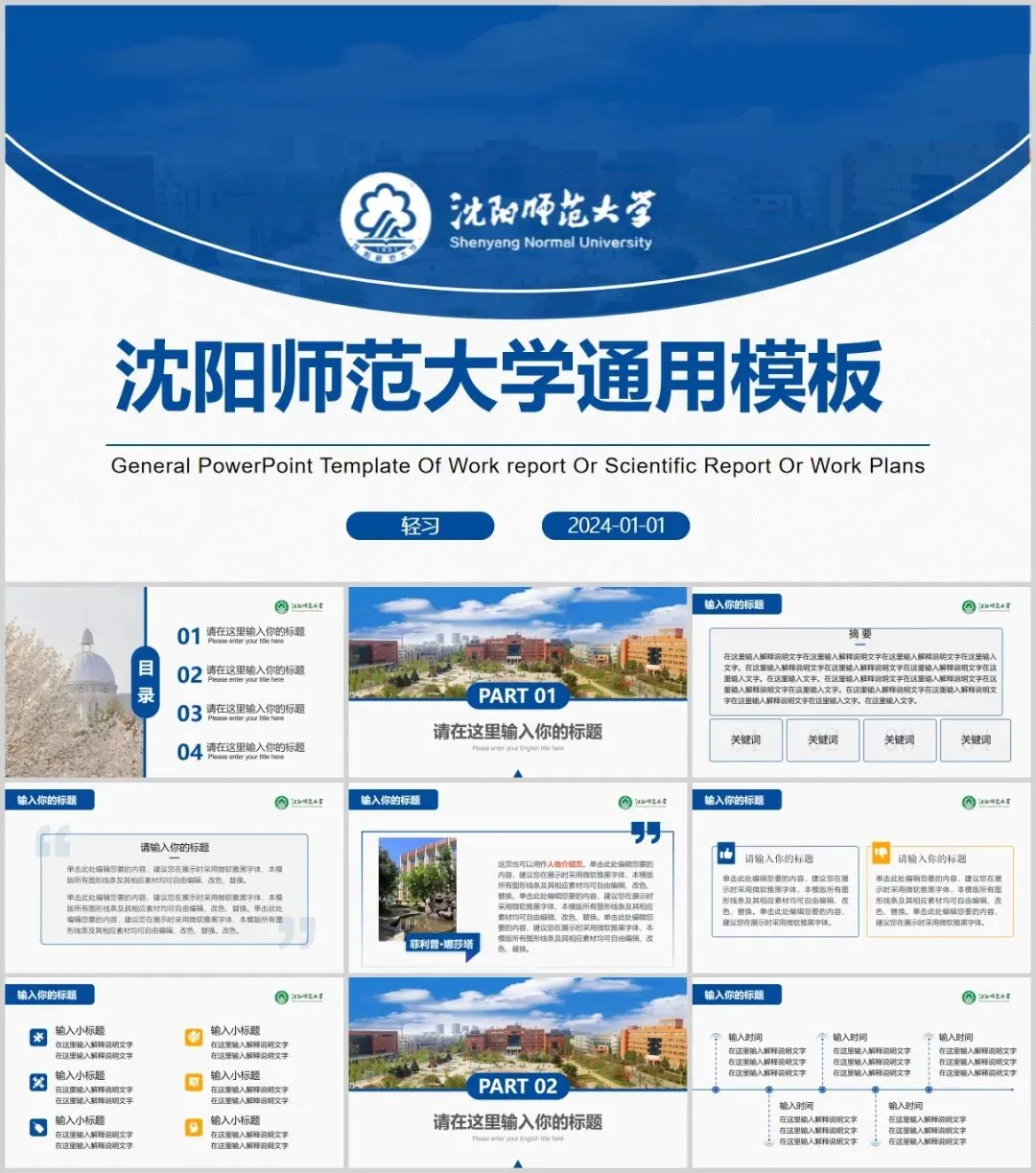 以上是我们为大家准备的沈阳师范大学的专属PPT模板,文中的所有板式都是可编辑的,大家可以上传替换自己喜欢的校园美景,做出具有自己风格的专属PPT哦!