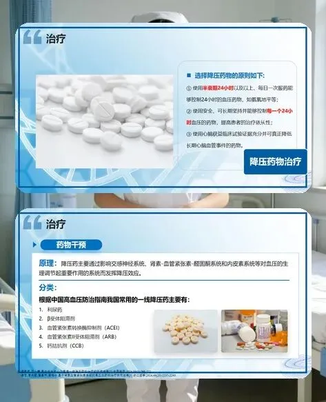 用药护理是控压核心。要告知患者按时规律服药的重要性,不能自行增减药量或停药。降压药物种类多,不同类型适用于不同人群,比如钙拮抗剂不受高盐饮食影响,适合容量性高血压患者;ACEI 类药物能保护肾脏,适合糖尿病肾病患者。用药要从小剂量开始,根据血压变化逐步调整,同时密切观察药物不良反应,出现不适及时就医。