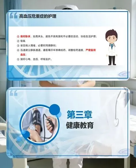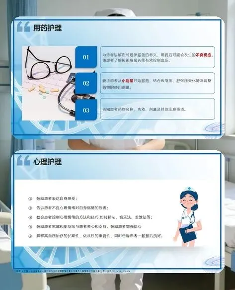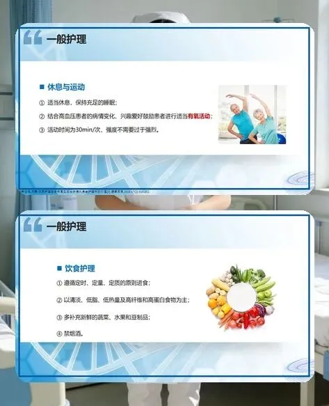 对高血压患者的健康教育也不能忽视。要向患者和家属普及高血压相关知识,让他们了解疾病的危害性和可控制性,提高治疗依从性。教会患者和家属正确测量血压的方法,指导他们做好居家血压监测和记录。同时强调长期坚持治疗的重要性,告知患者即使血压控制平稳,也需定期复查,根据病情调整治疗方案。