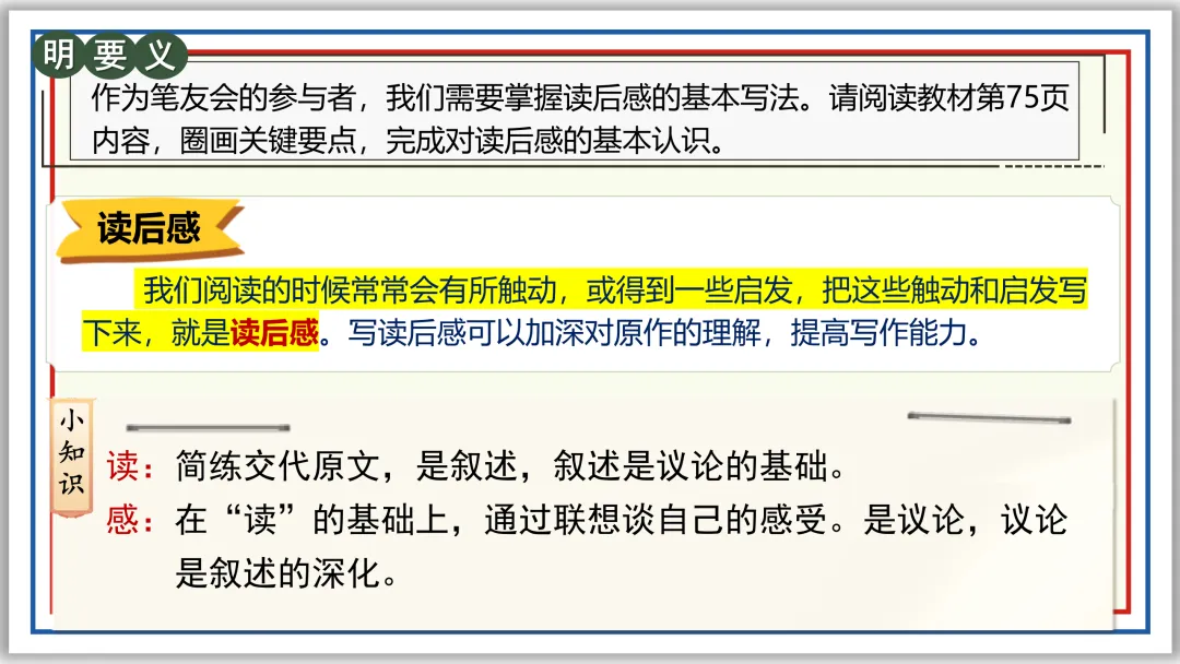 A版·八下三单元作文:“学写读后感”导写