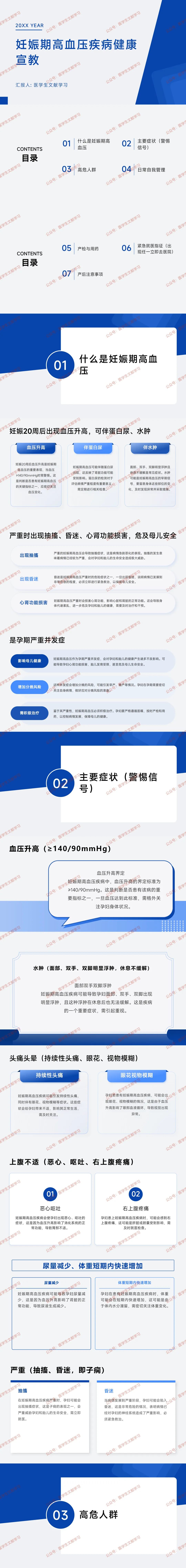 核心定义:妊娠 20 周后出现血压升高(≥140/90mmHg),可伴蛋白尿、面部及四肢水肿(休息不缓解)。