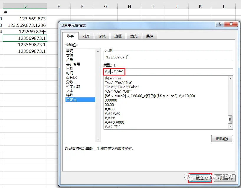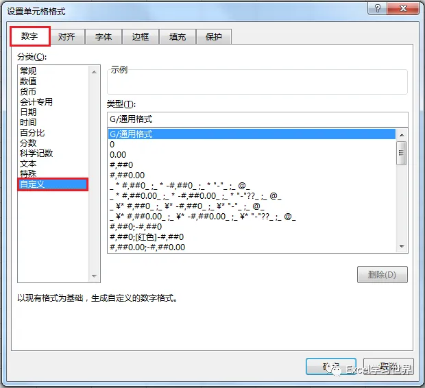 按 Ctrl+1 --> 选择菜单栏的“数字”-->“自定义”,就能看到各种各样的自定义类型。