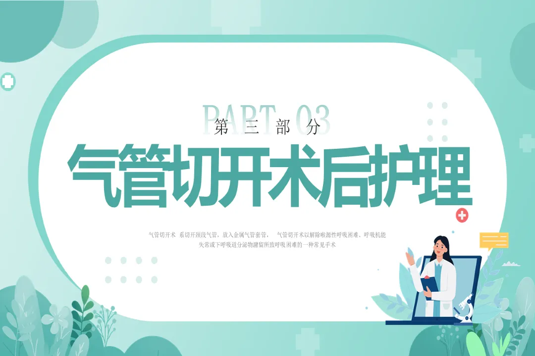 以上就是气管切开病人护理的核心内容,该护理工作要求我们细致、严谨,严格遵循操作规程,关注患者生理与心理的双重需求,只有做好每一个细节,才能有效降低并发症风险,助力患者顺利康复。我的讲解到此结束,谢谢大家!