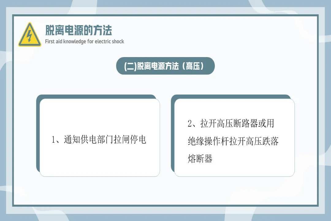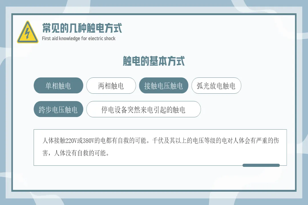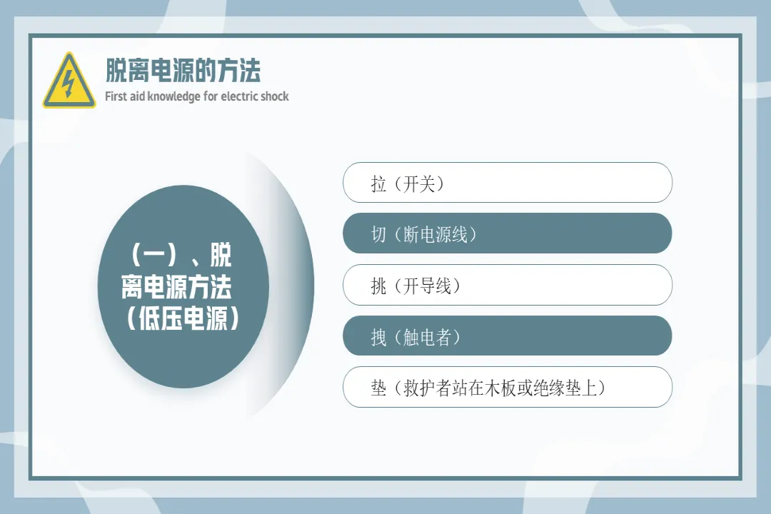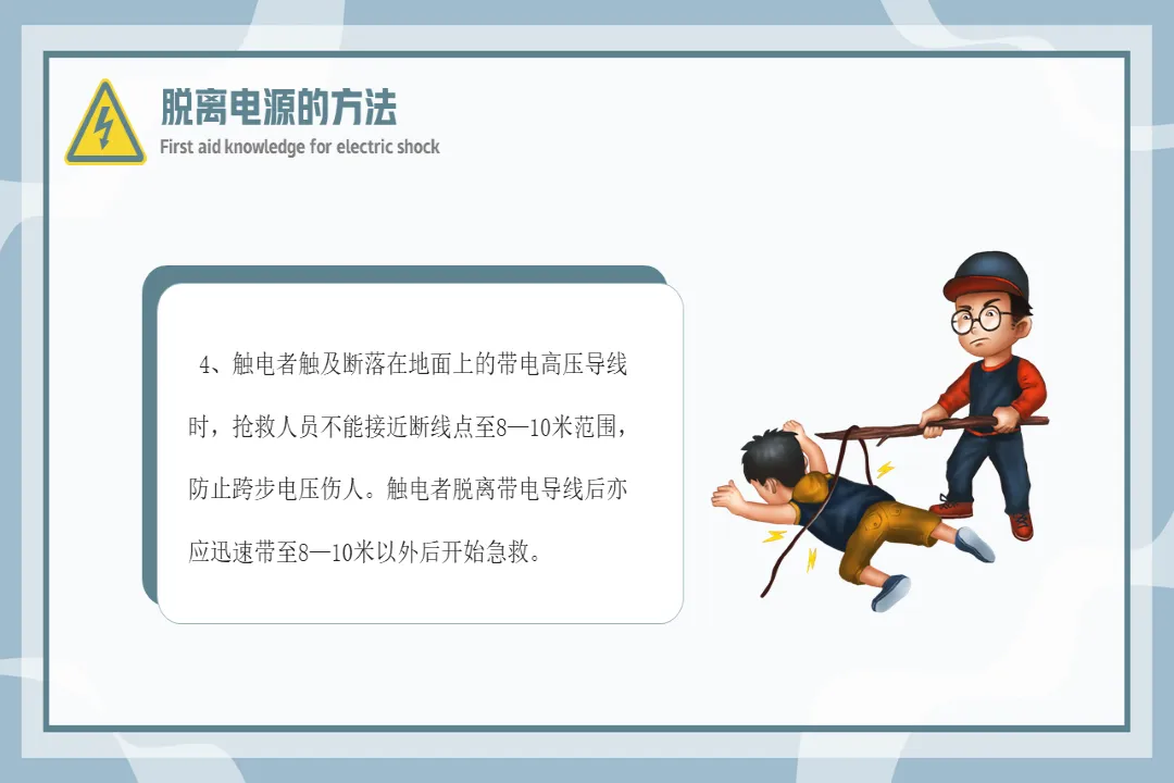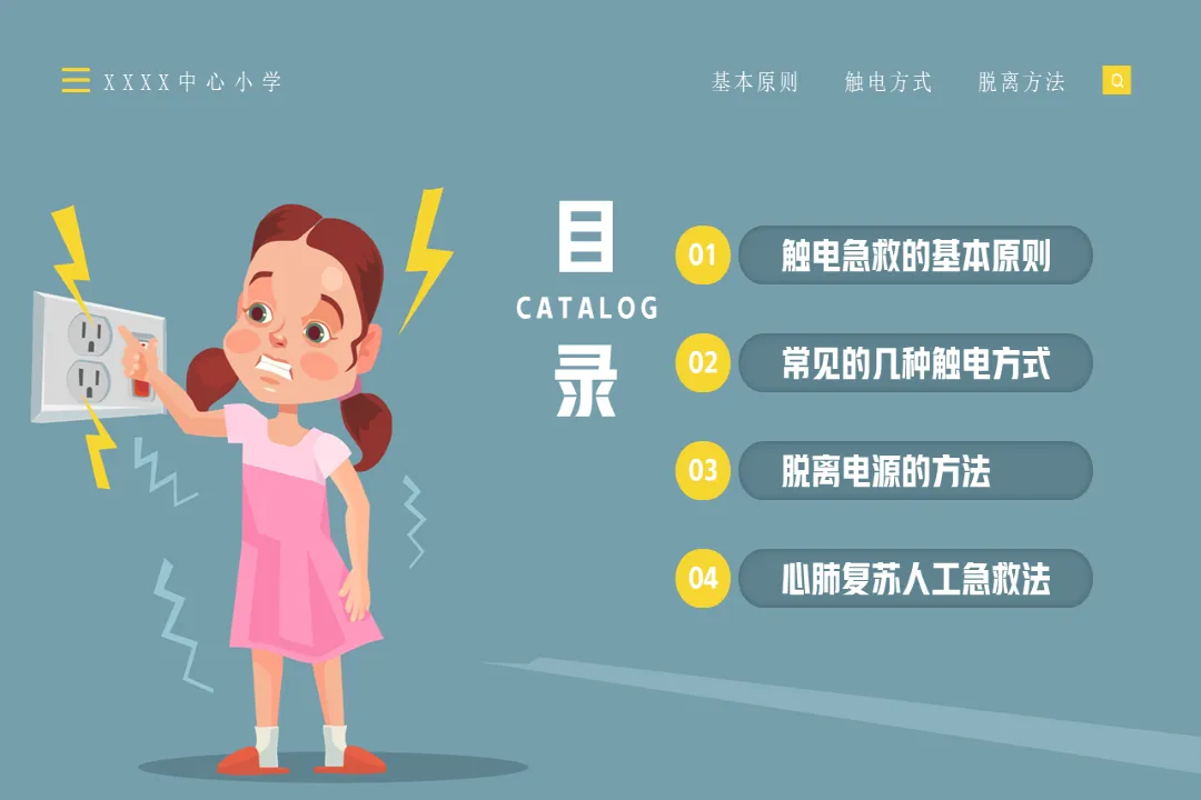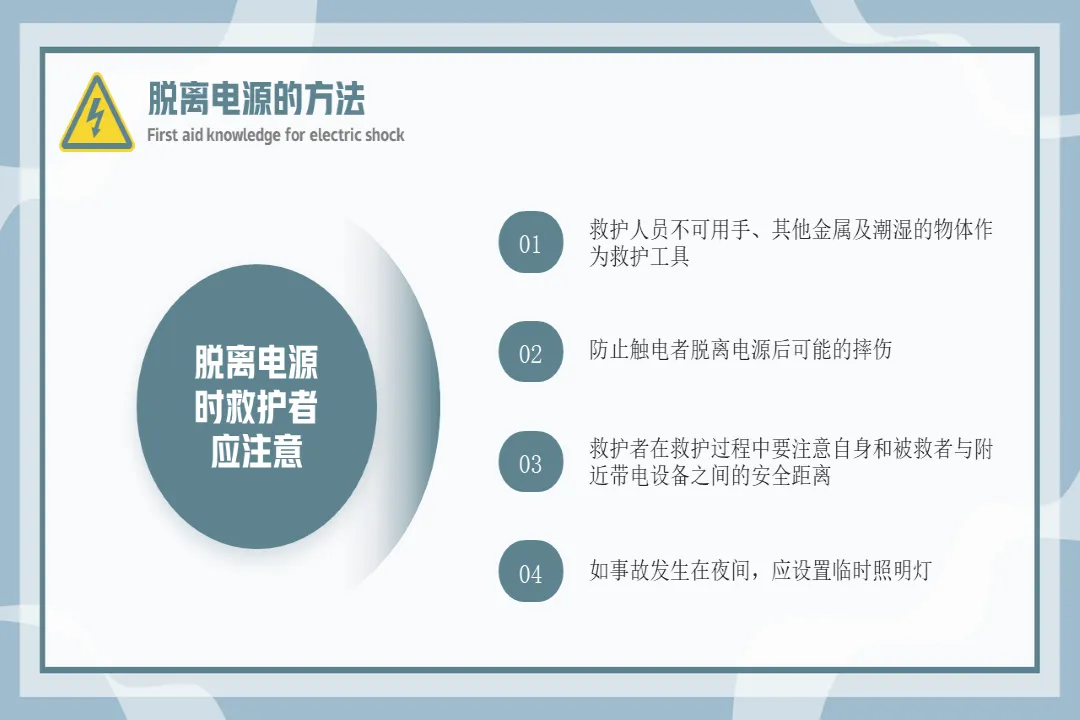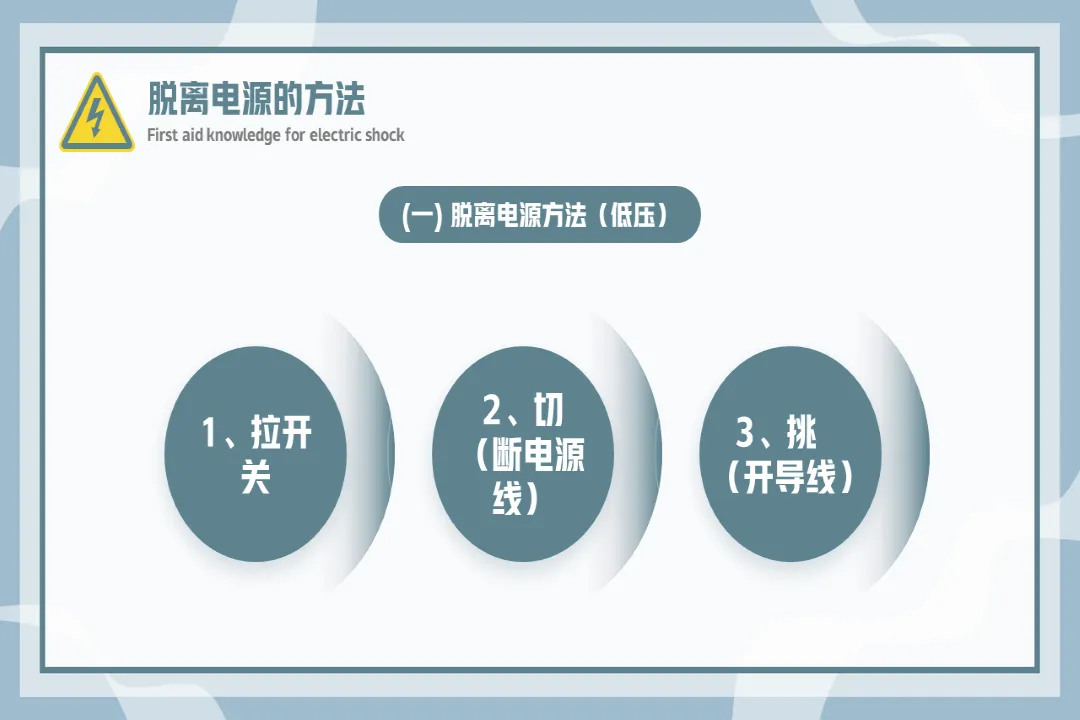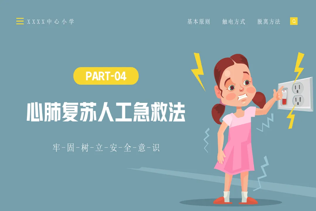 🍎内容:触电急救知识-医护PPT模版📅页数:共36页,无水印可二次编辑🌲目录:01 触电急救的基本原则02 常见的几种触电方式03 脱离电源的方法04 心肺复苏人工急救法