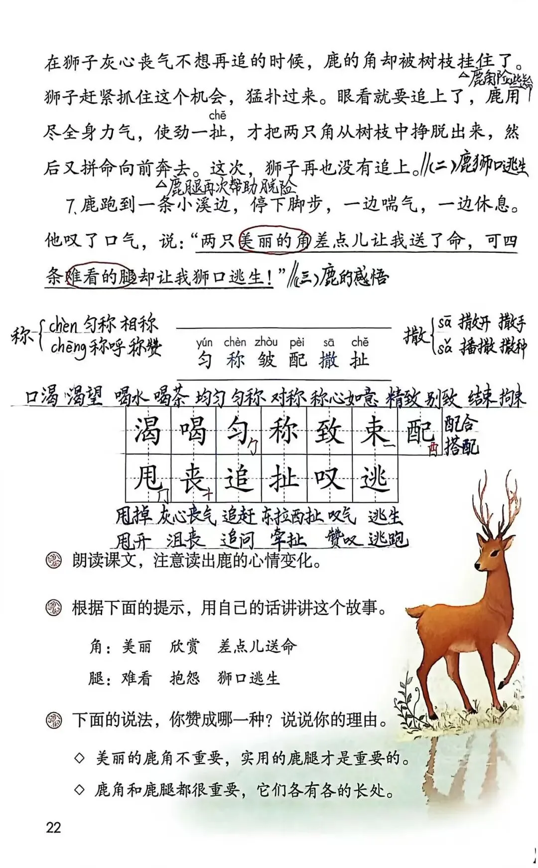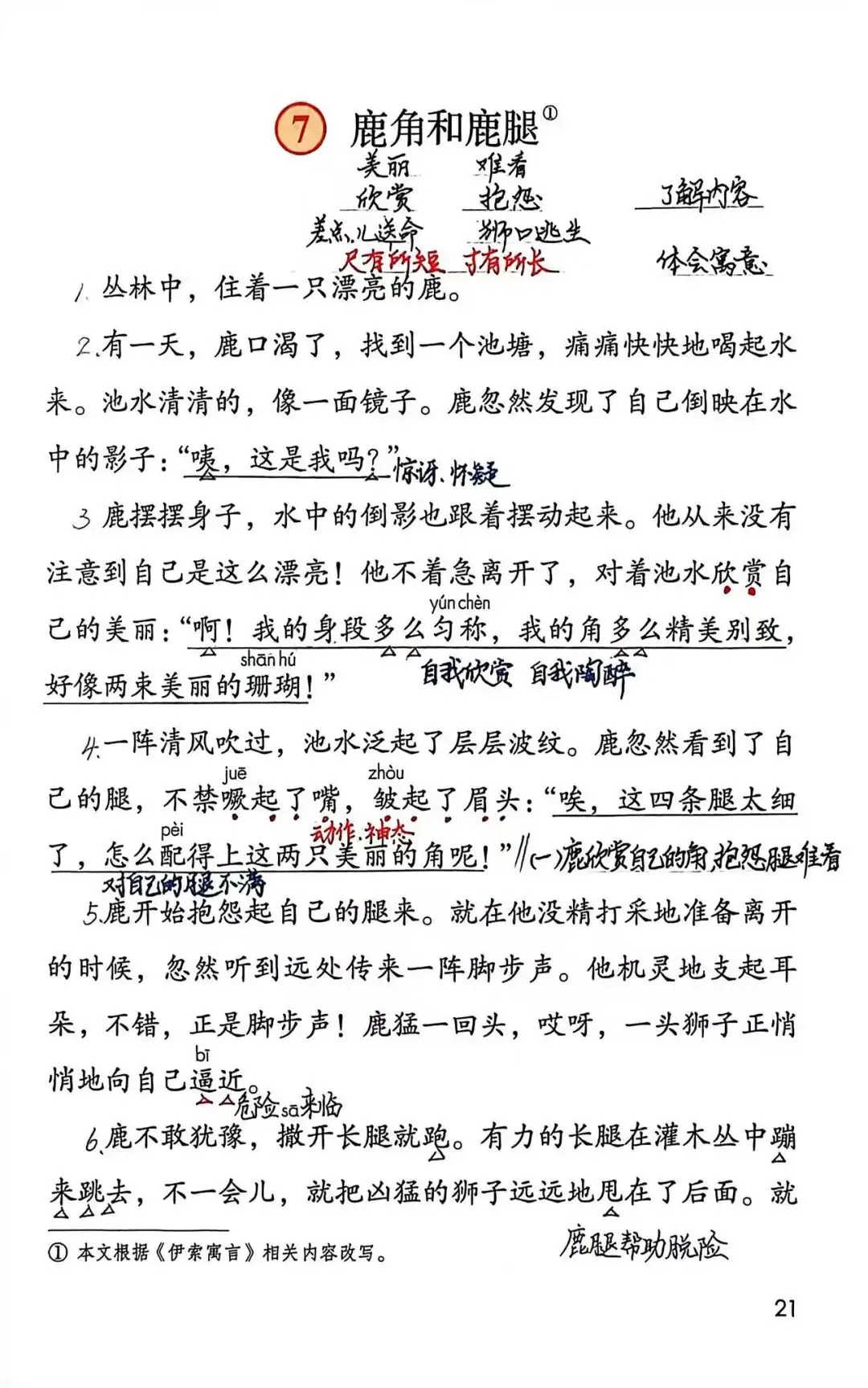 教学中可依托课后第二题 “根据下面的提示,用自己的话讲讲这个故事”,借助关键词等可视化工具,引导学生把故事讲完整、讲清楚,在梳理内容的过程中体会寓言蕴含的道理,促进学生从形象思维逐步向理性思考过渡与发展。