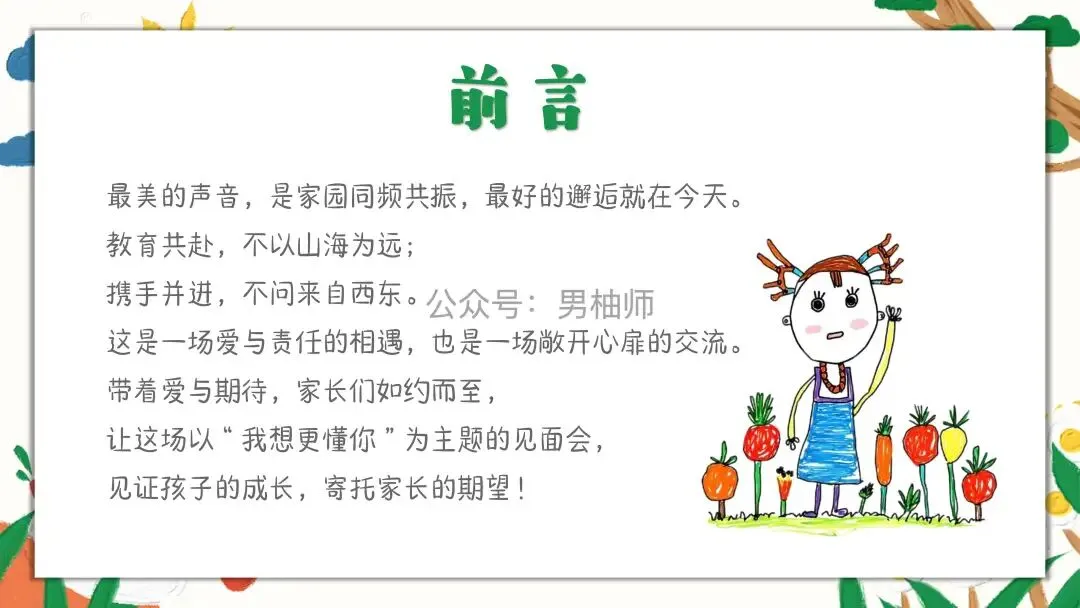 此页通过互动,希望家长有所感悟。页面有动画设计,游戏时不出示下面总结,游戏结束后点击鼠标或用翻页笔出示总结文字。