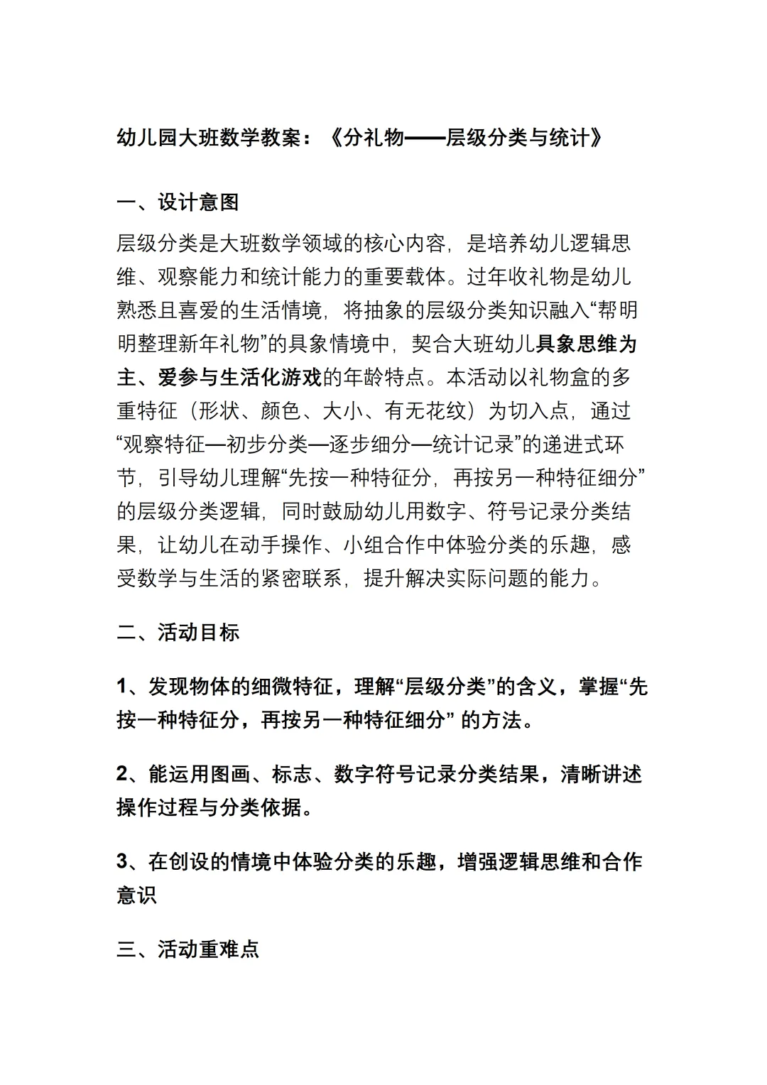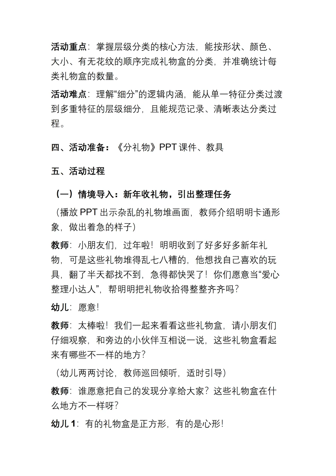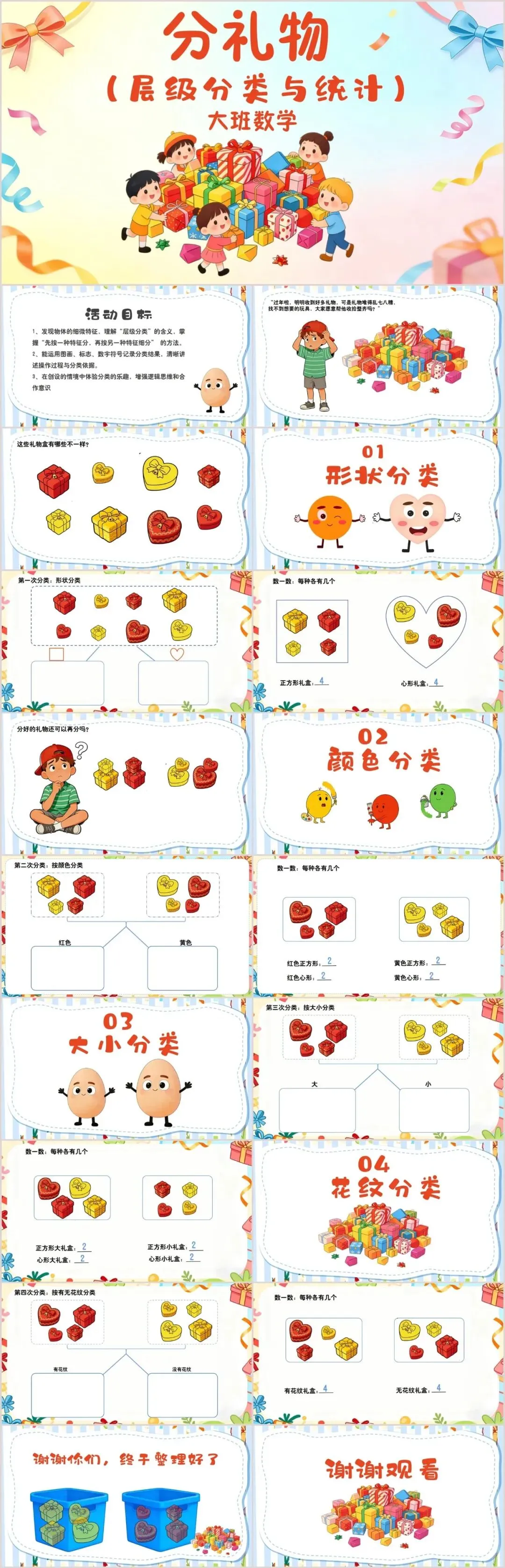 >幼儿园大班数学《分礼物》动态课件PPT+教案+说课稿+操作教具
