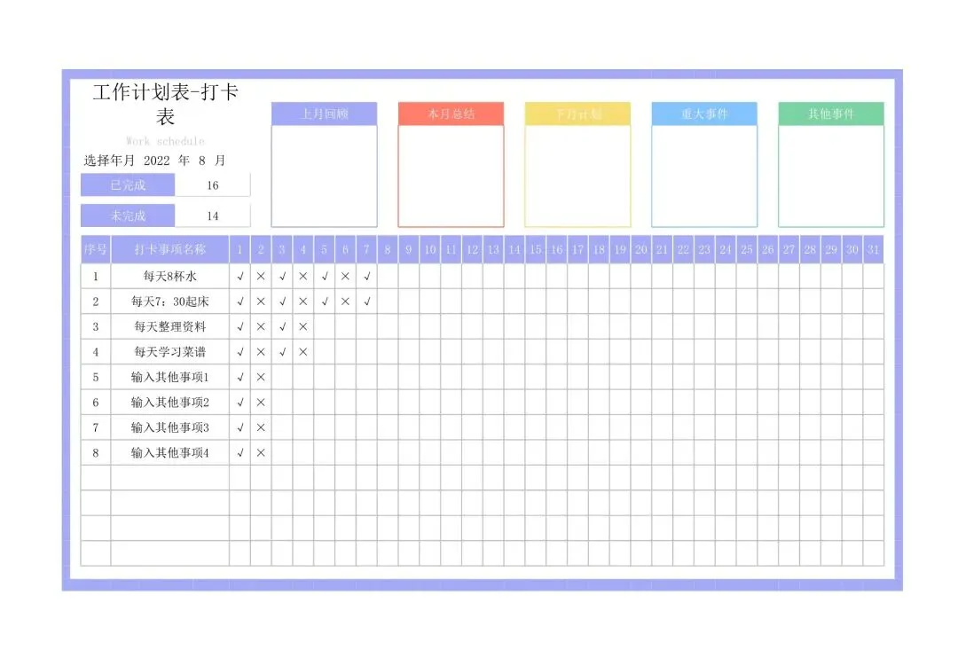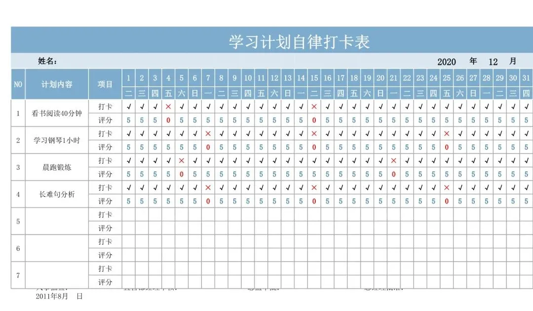 打卡计划表