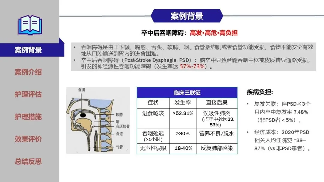 卒中后吞咽障碍是由于脑卒中导致延髓吞咽中枢或皮质传导通路受损引发的神经源性吞咽功能障碍,严重影响患者的健康。